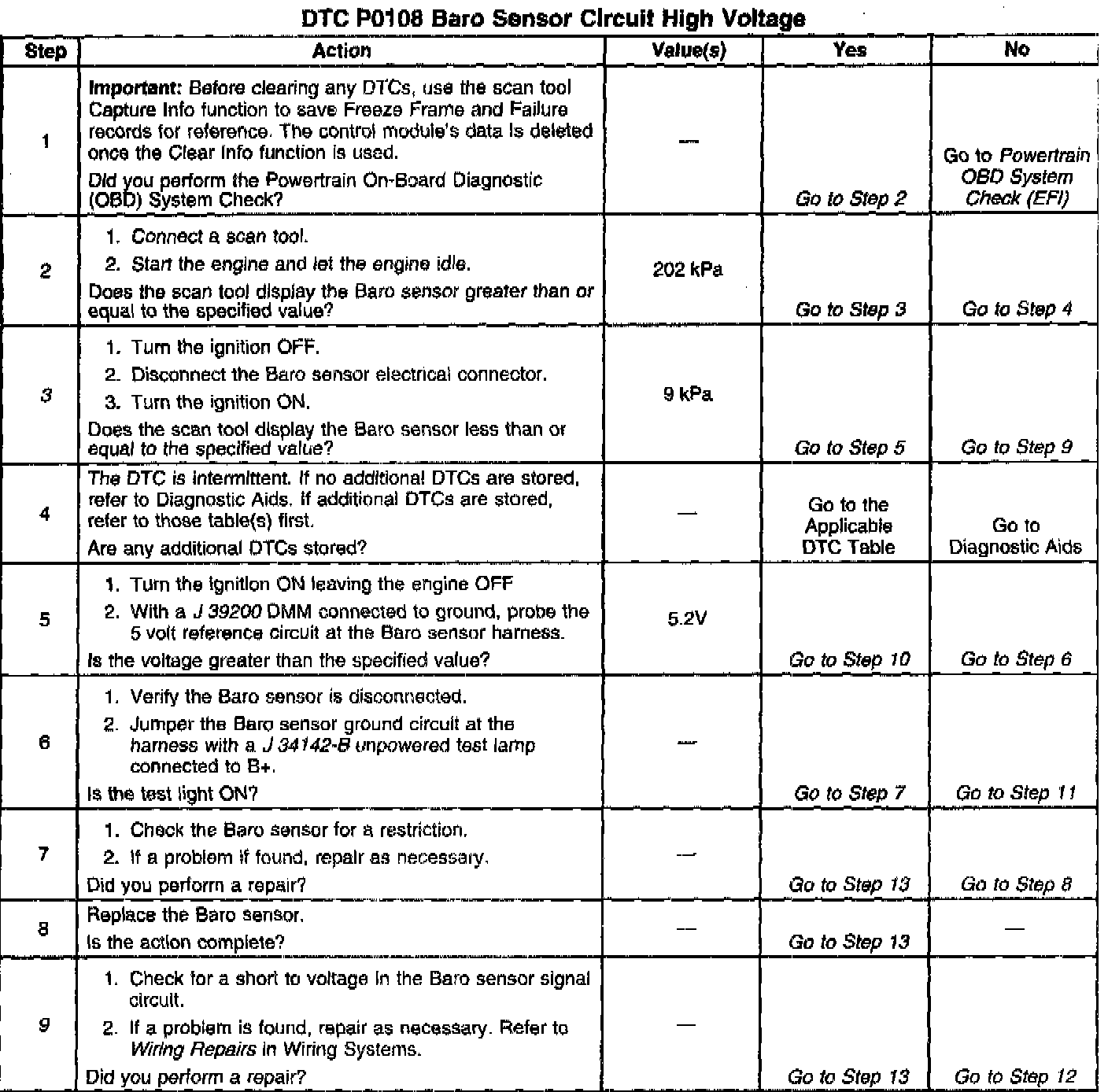 9.If the scan display is still less than or equal to 9 kPa by disconnecting the PCM the short to voltage is in the wiring.