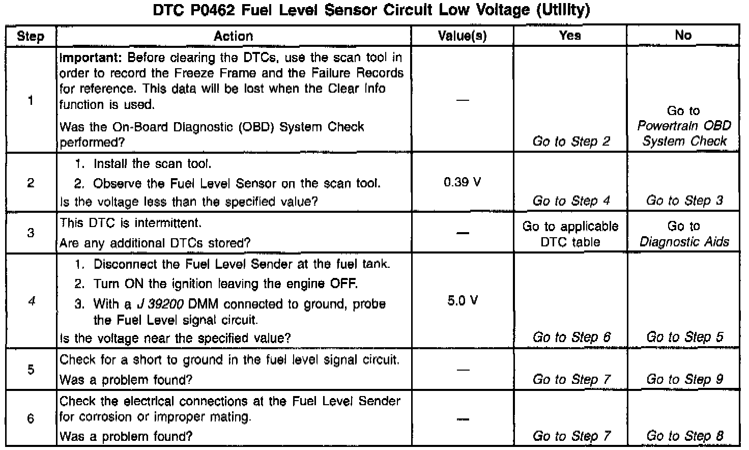 ^ The fuel level signal voltage is less than 0.39 volts for a period greater than 20 seconds.