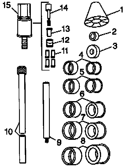 1. Assemble the J 33049 handle (10), the expanding driver (4-8), the washer (2 or 3), and the expander assembly (15).
