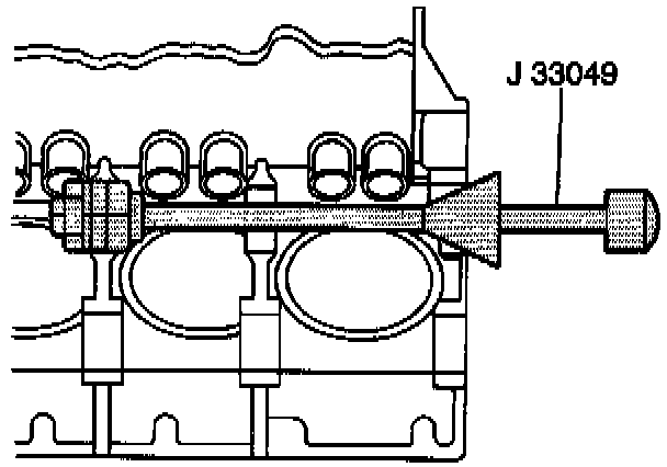 2.12. Carefully slide the J 33049 into the engine block until the J 33049 expander assembly is positioned between the camshaft inner bearing bores.