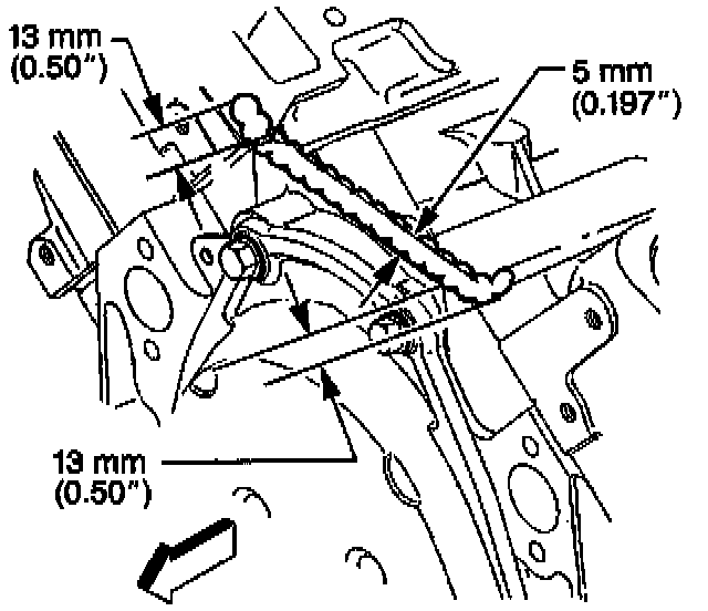 4. Extend the adhesive bead 13 mm (0.50 inch) onto each lower intake manifold gasket.