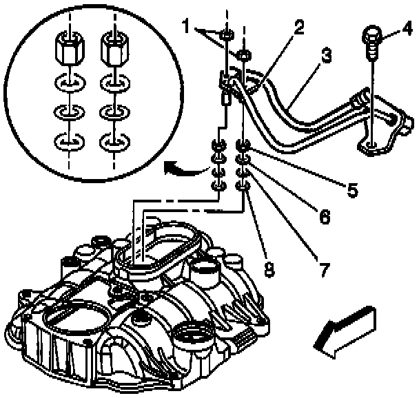21. If reusing the fastener, apply Threadlock GM P/N 12345382 or equivalent to the threads of the fuel pipe bolt.