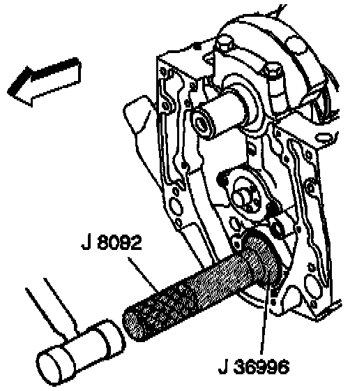 2. Use the J 36996 and the J 8092 in order to install the balance shaft.