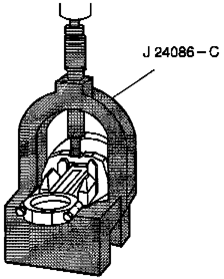 NOTICE: After the J 24086-C installer hub bottoms on the support assembly, DO NOT exceed 35 000 kPa (5,000 psi) or the tool may be damaged.