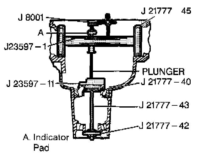 7. Assemble the J 21777-45, the J 23597-11, and the J 8001 to the differential bearing bores. The bores must be clean and free of burrs.
