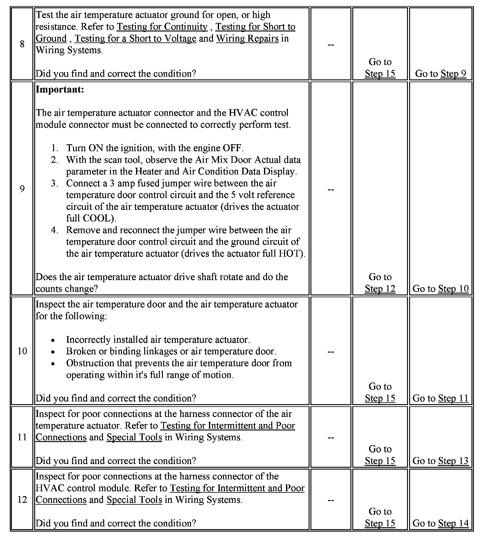 - The 5 V air temperature door control circuit is shorted to voltage, ground, or open.