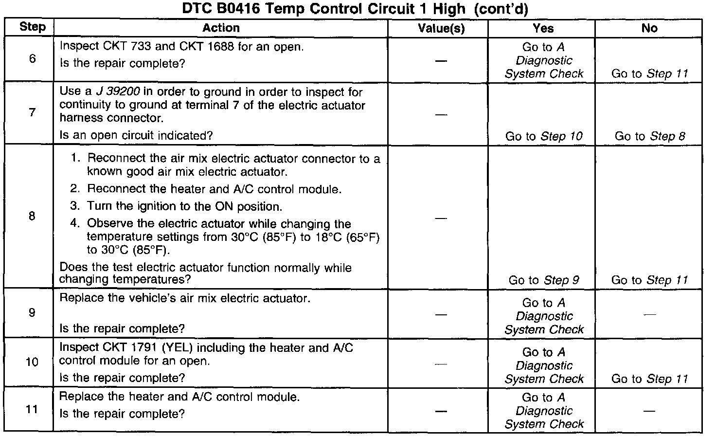 6. This step determines if the open is in CKT 733 and CKT 1688 or the heater and A/C control module.