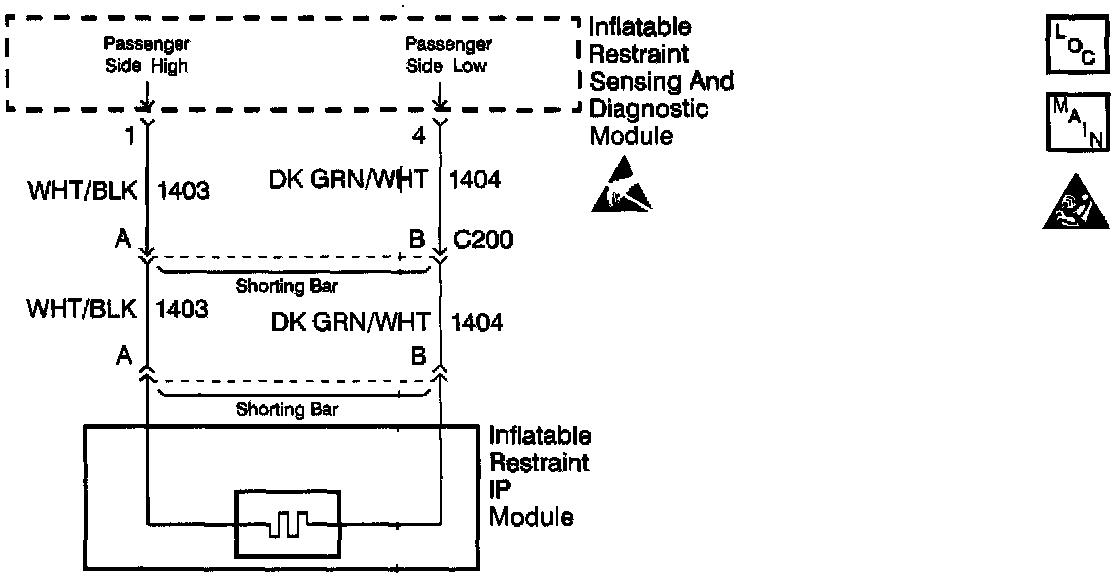 ^ A poor connection at the inflatable restraint Instrument Panel (IP) module harness connector terminals A and B.