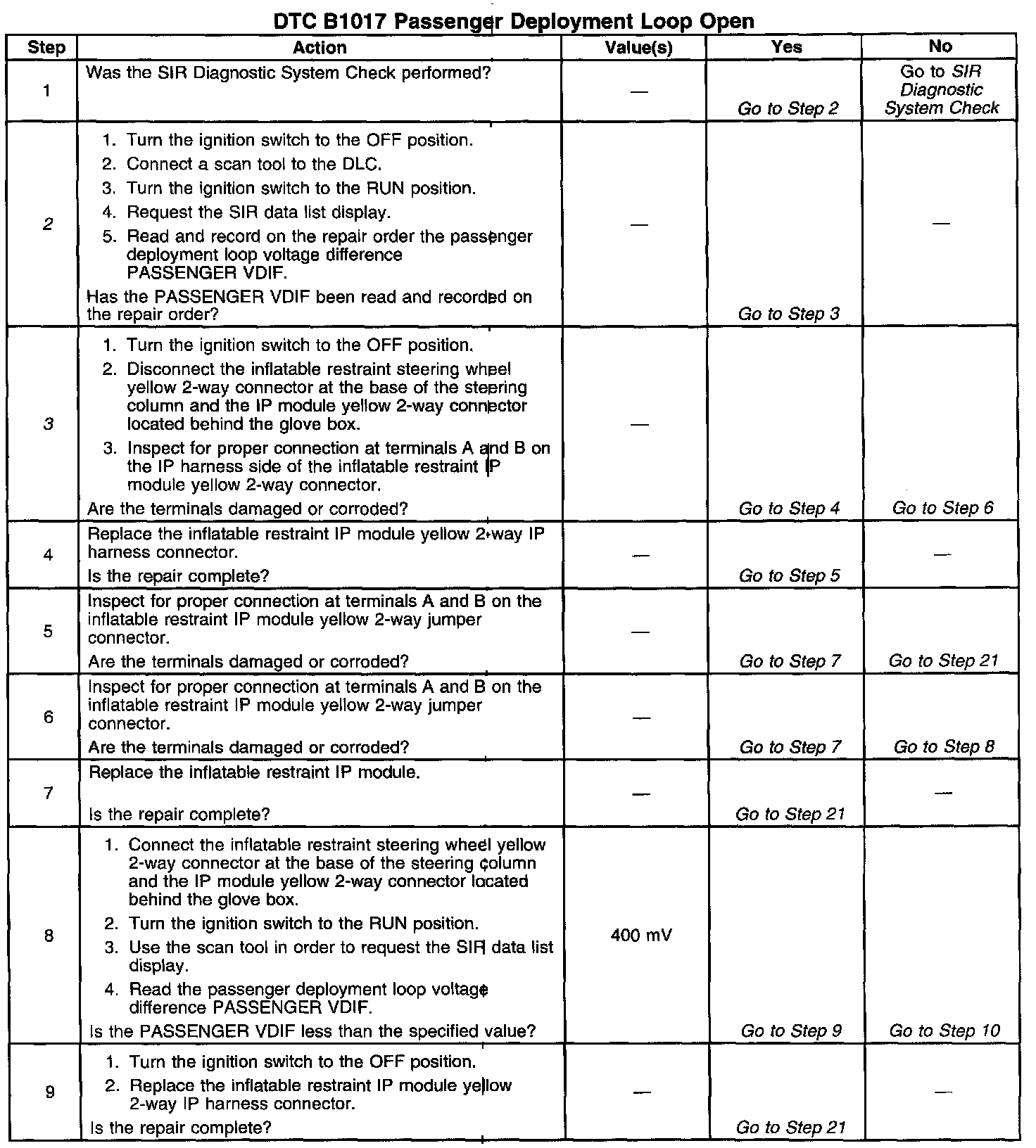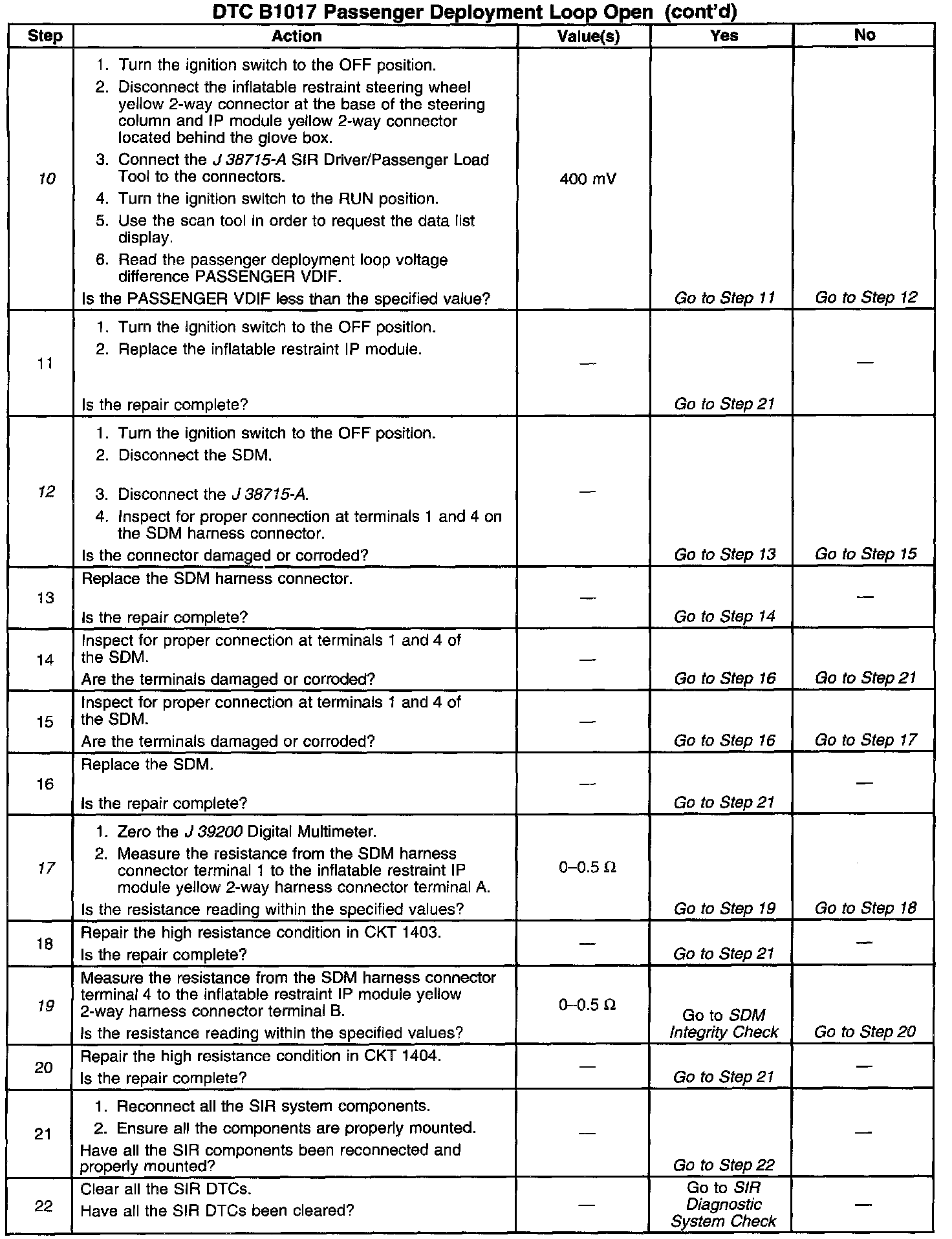 When measurements are requested in this table, use the J 39200 Digital Multimeter with the correct terminal adapter from the J 35616-A Connector Test Adapter Kit. When an inspection for proper connection is requested, refer to Intermittents and Poor Connections. When a wire, connector or terminal repair is requested, use the J 38125-B Terminal Repair kit. Refer to Wiring Repair. Intermittent Problems SIR Wiring Repair