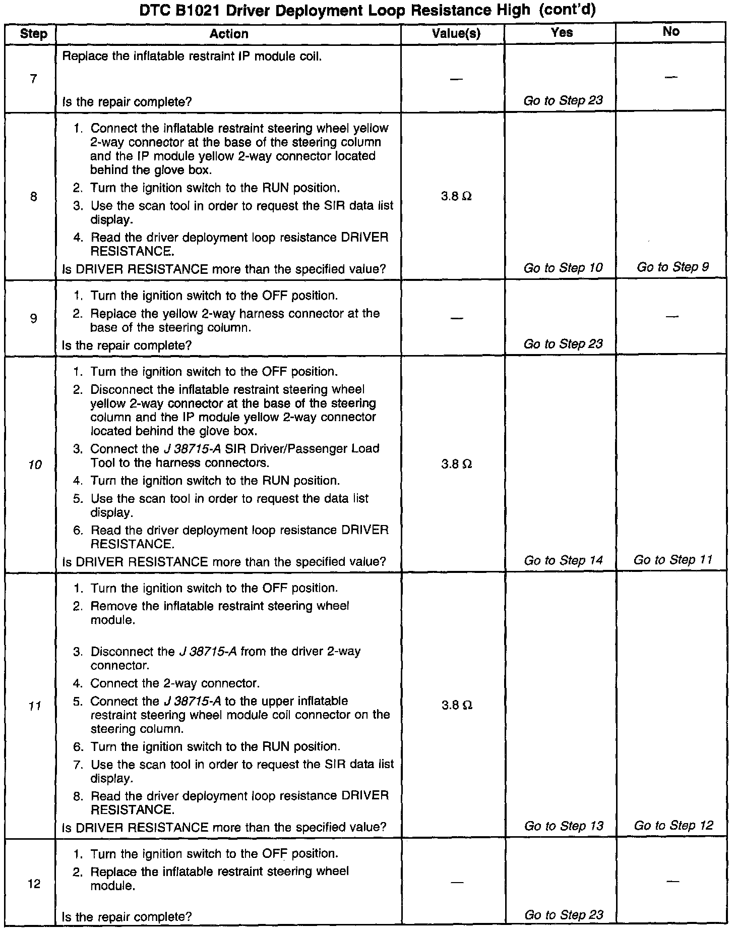 11. This test determines whether the malfunction is due to the inflatable restraint steering wheel module or the module coil.