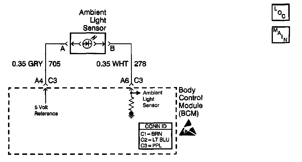 The Body Control Module (BCM) provides a constant output reference voltage (5 volts) in order to enable correct operation of the ambient light sensor. The constant output reference voltage supply ensures that variations in the output signal of the ambient light sensor are due to changes of the sensor rather than variations in the voltage supply. The BCM monitors the constant output reference voltage (5 volts) and sets a DTC when the output is not within the specified range (4.75-5.25 volts).