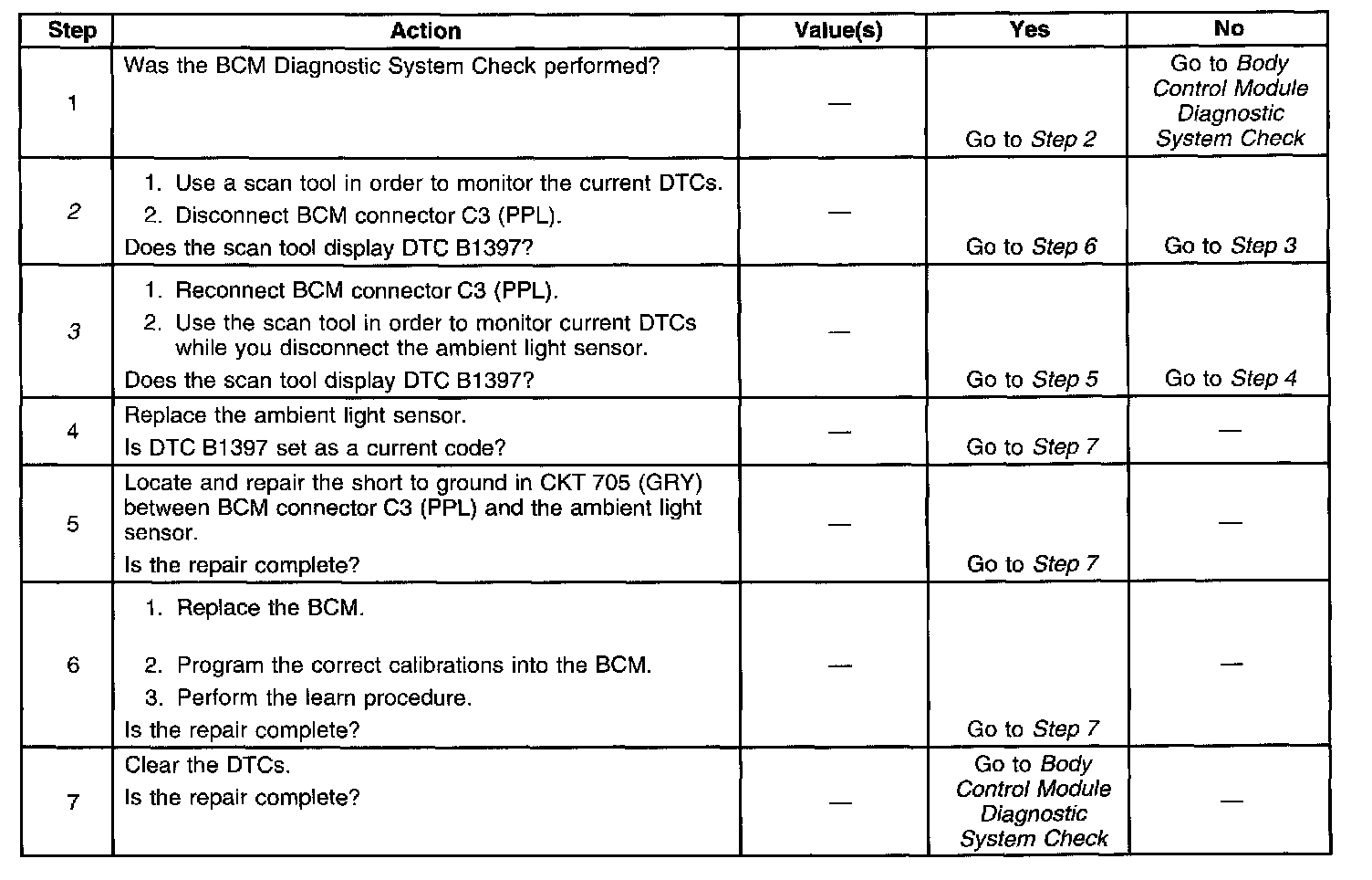 2. This step determines if the BCM 5 volt reference output voltage is shorted internally. Other DTCs will set when you disconnect the BCM connector.