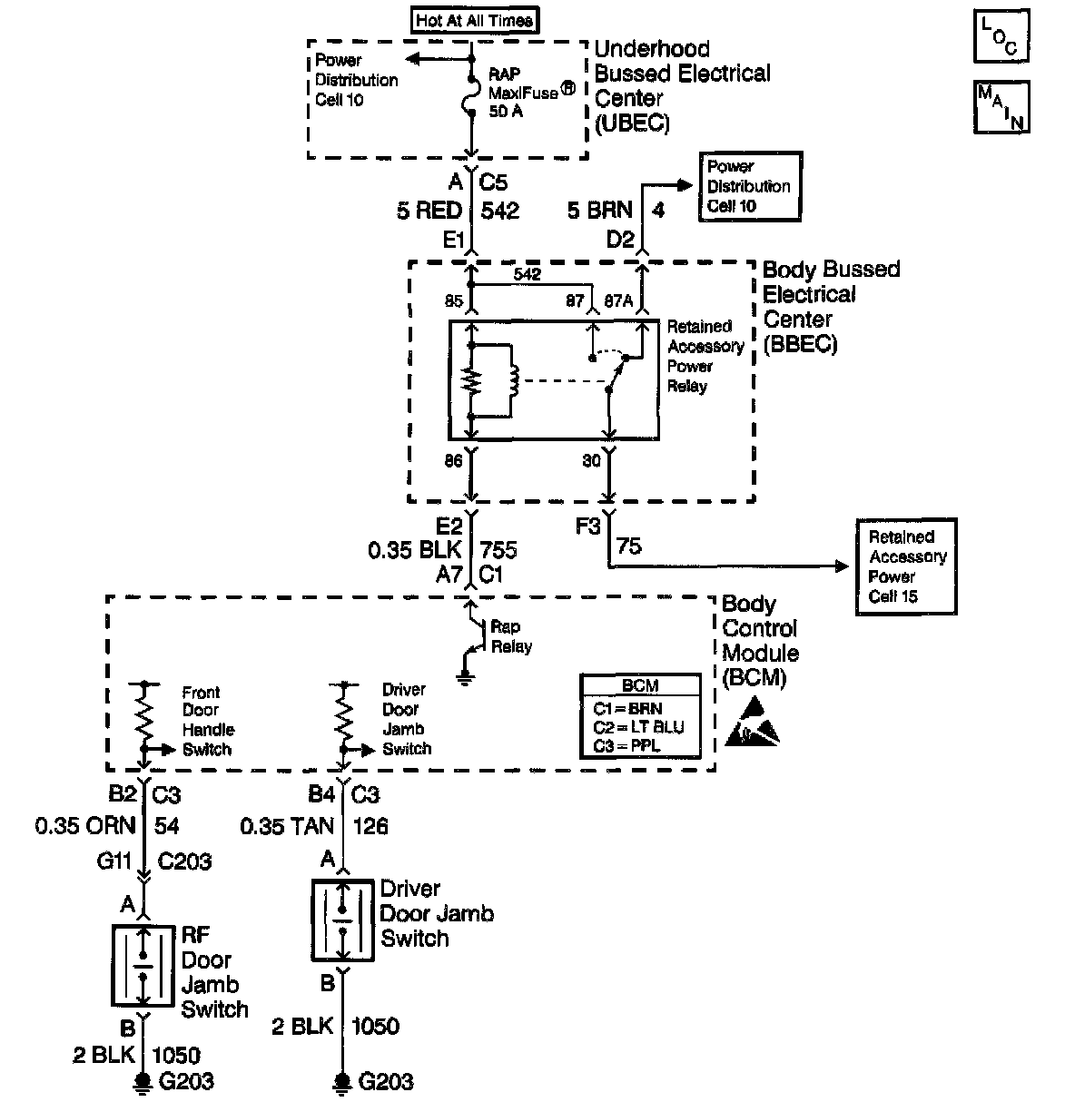 2. This step verifies the condition of the RAP relay fuse and CKT 542 to the body bussed electrical center (BBEC).