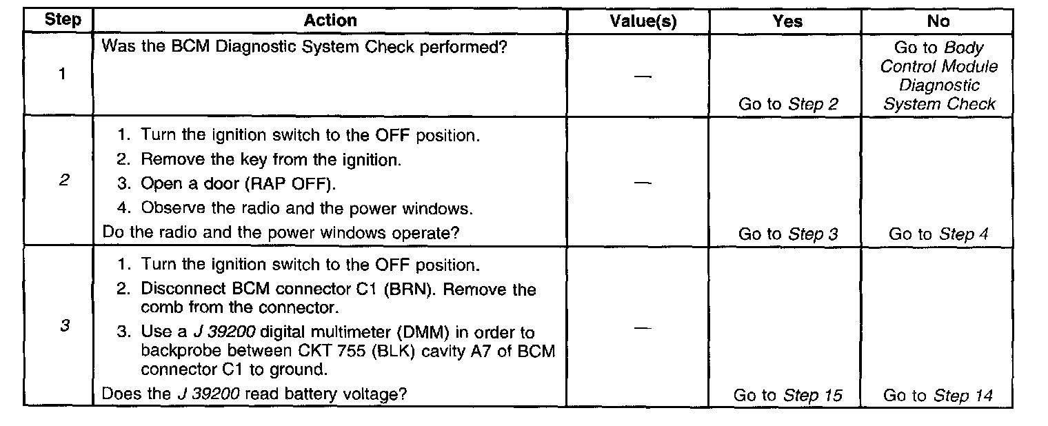 4. This step determines if the BCM is operating correctly.