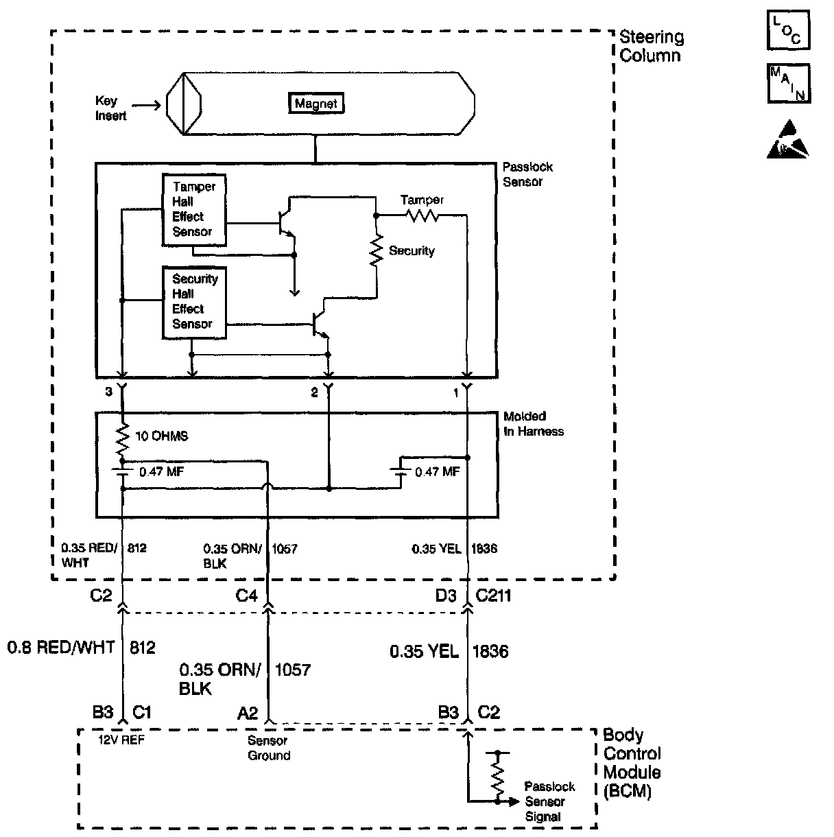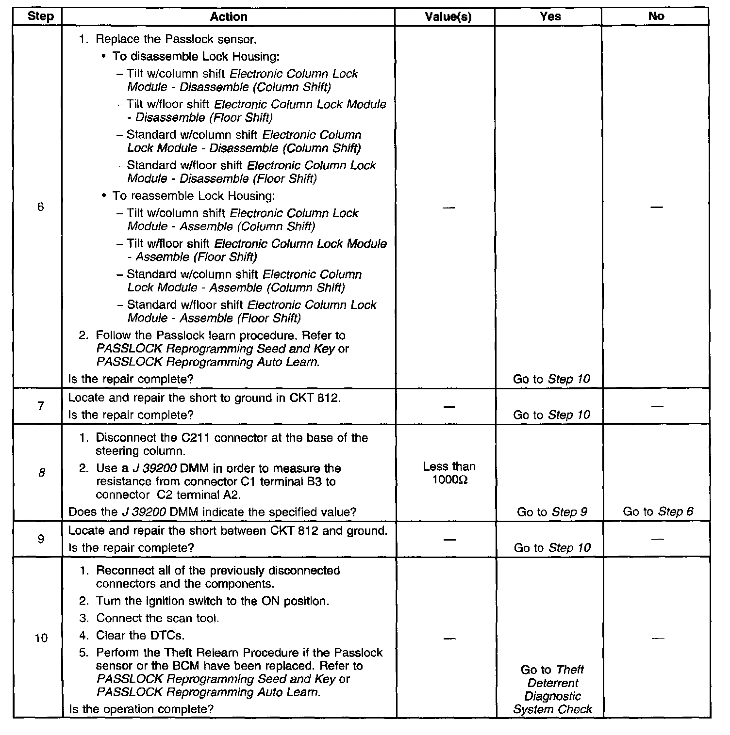 8. This step isolates the short in CKT 812 and CKT 1057 between the harness and the Passlock sensor.