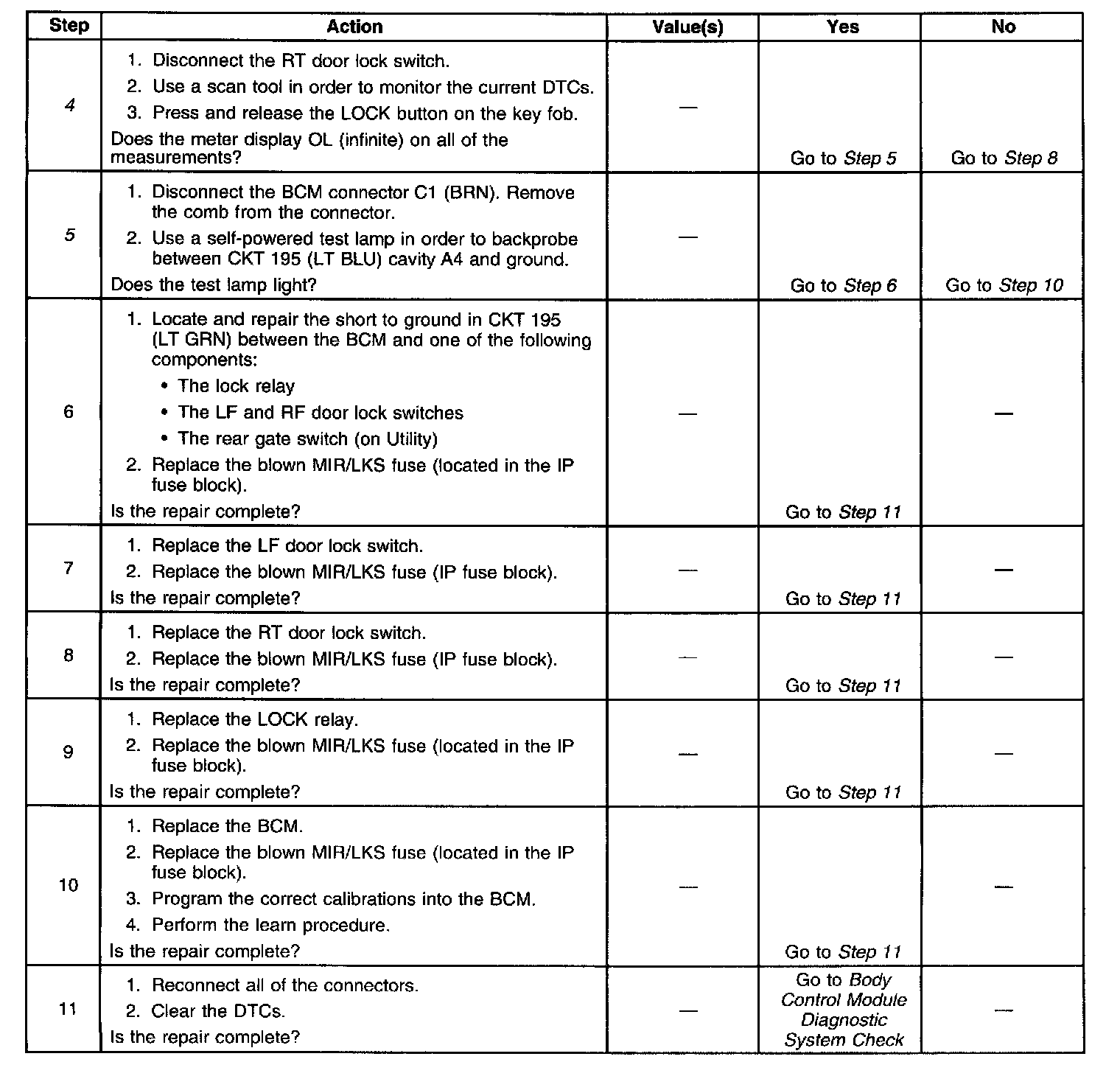 ^ When the BCM receives a lock signal from the remote control door lock receiver module and CKT 195 is shorted to ground.