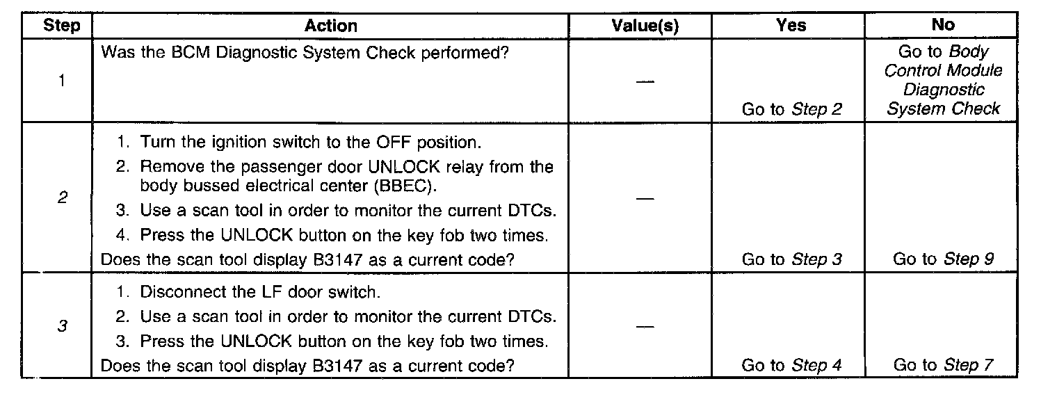 DTC B3147 Passenger Unlock Switch Circuit Low (Part 2 Of 2):