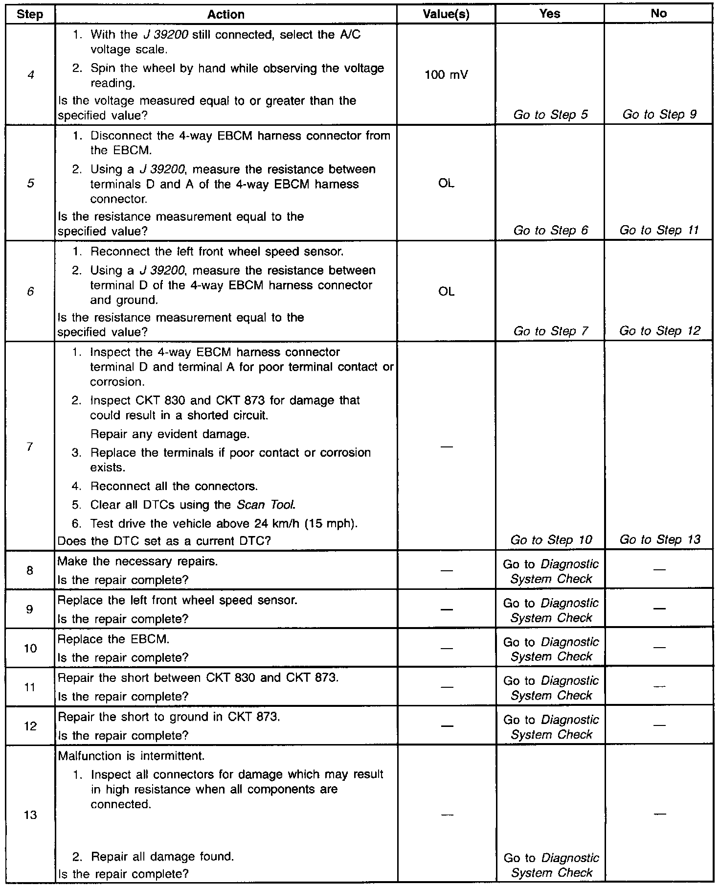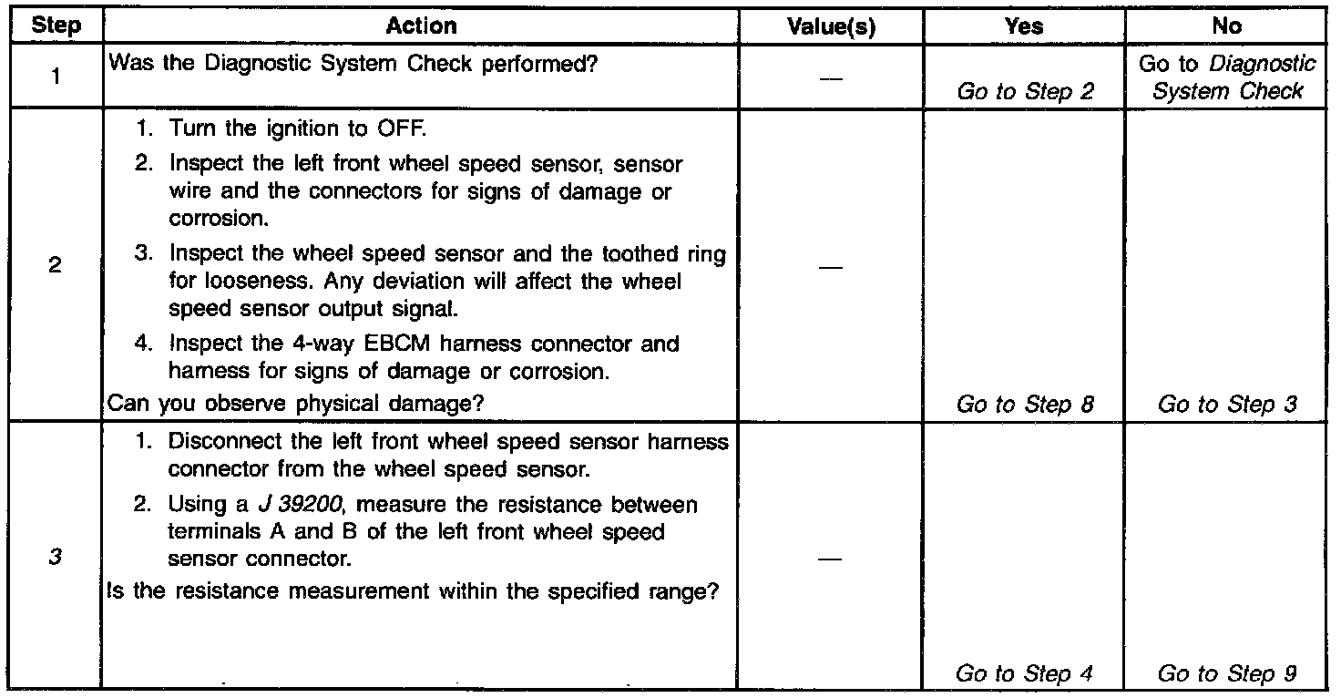 6. This step checks for a short to ground in the left front wheel speed sensor circuit.