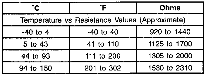 Resistance of the wheel speed sensor will increase with an increase in sensor temperature. Refer to the tables for temperature/resistance values.