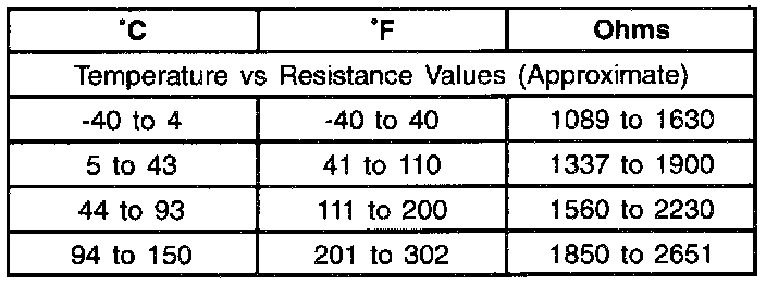 WSS Temperature Vs. Sensor Resistance (2WD And 4WD Only):