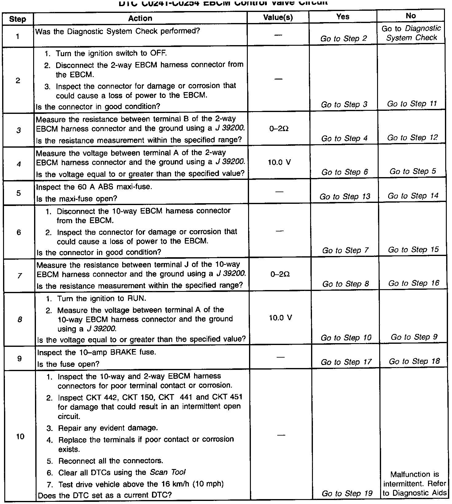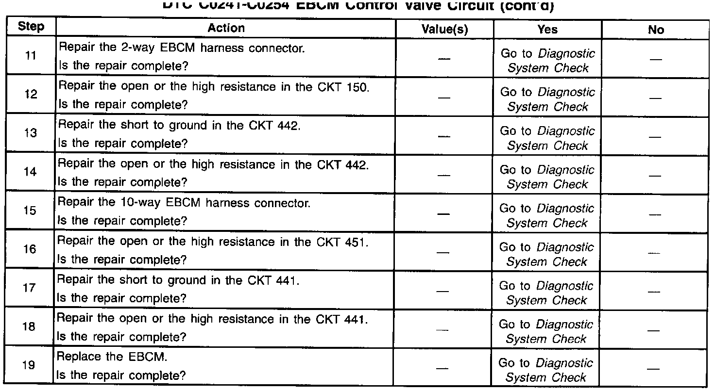 ^ Low voltage exists on the EBCM solenoid driver circuit when high voltage is expected (the solenoid is not energized)