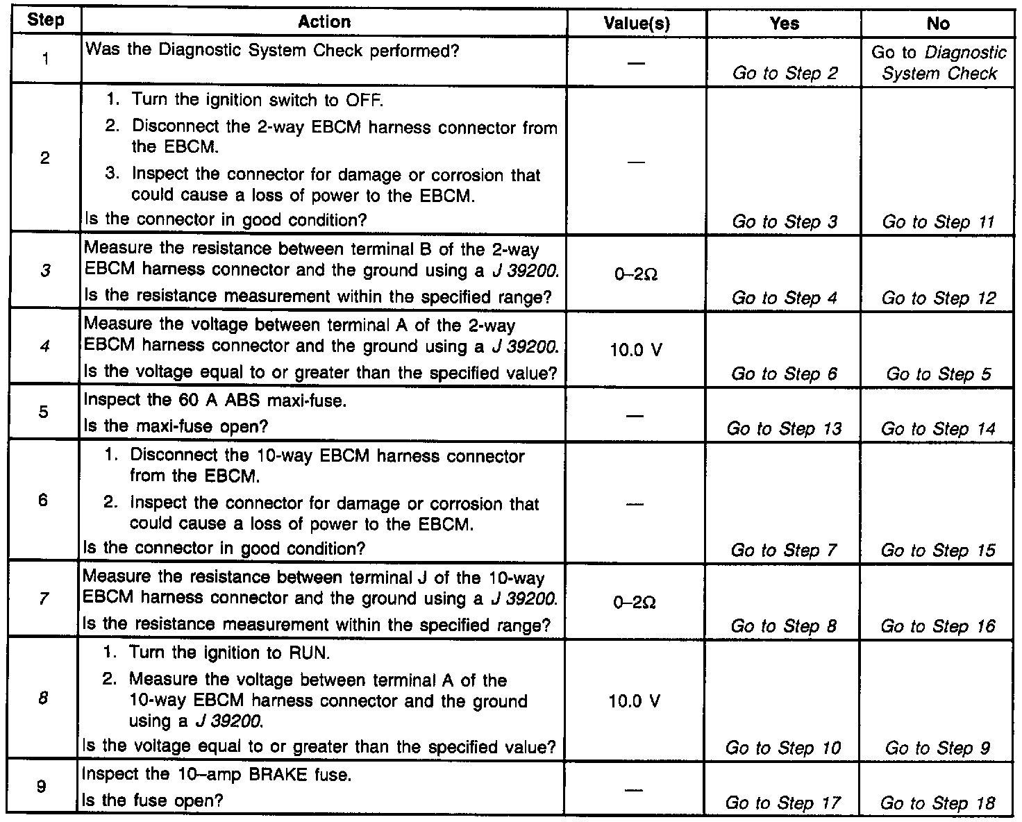 If DTC C0265 appears with other DTCs repair the other DTCs first. Clear all DTCs. Then run three function tests with the Scan Tool. Refer to this diagnostic chart if DTC C0265 resets.