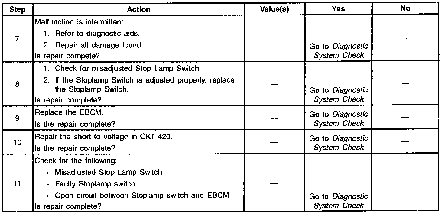 3. This step checks for a short to voltage in the Stop Lamp Switch circuit between the Stoplamp Switch and the EBCM.