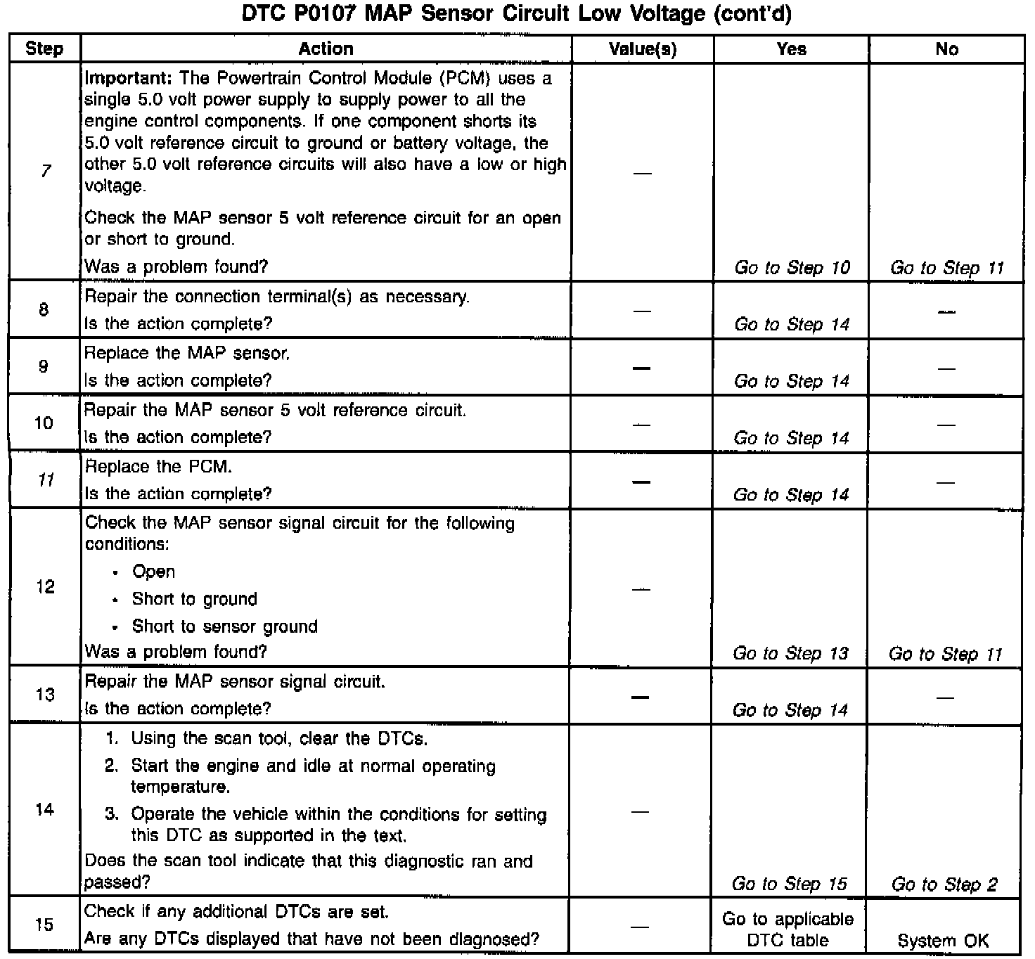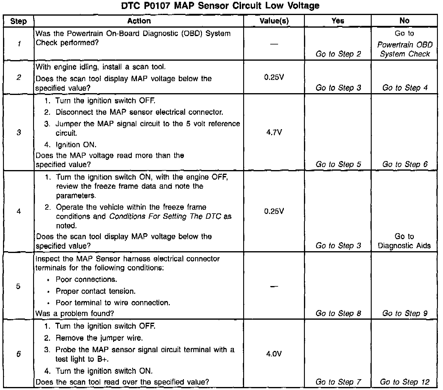 ^ Whenever a DTC P0107 is intermittent, refer to the Driveability Symptoms Tables or to Symptoms for further diagnosis.