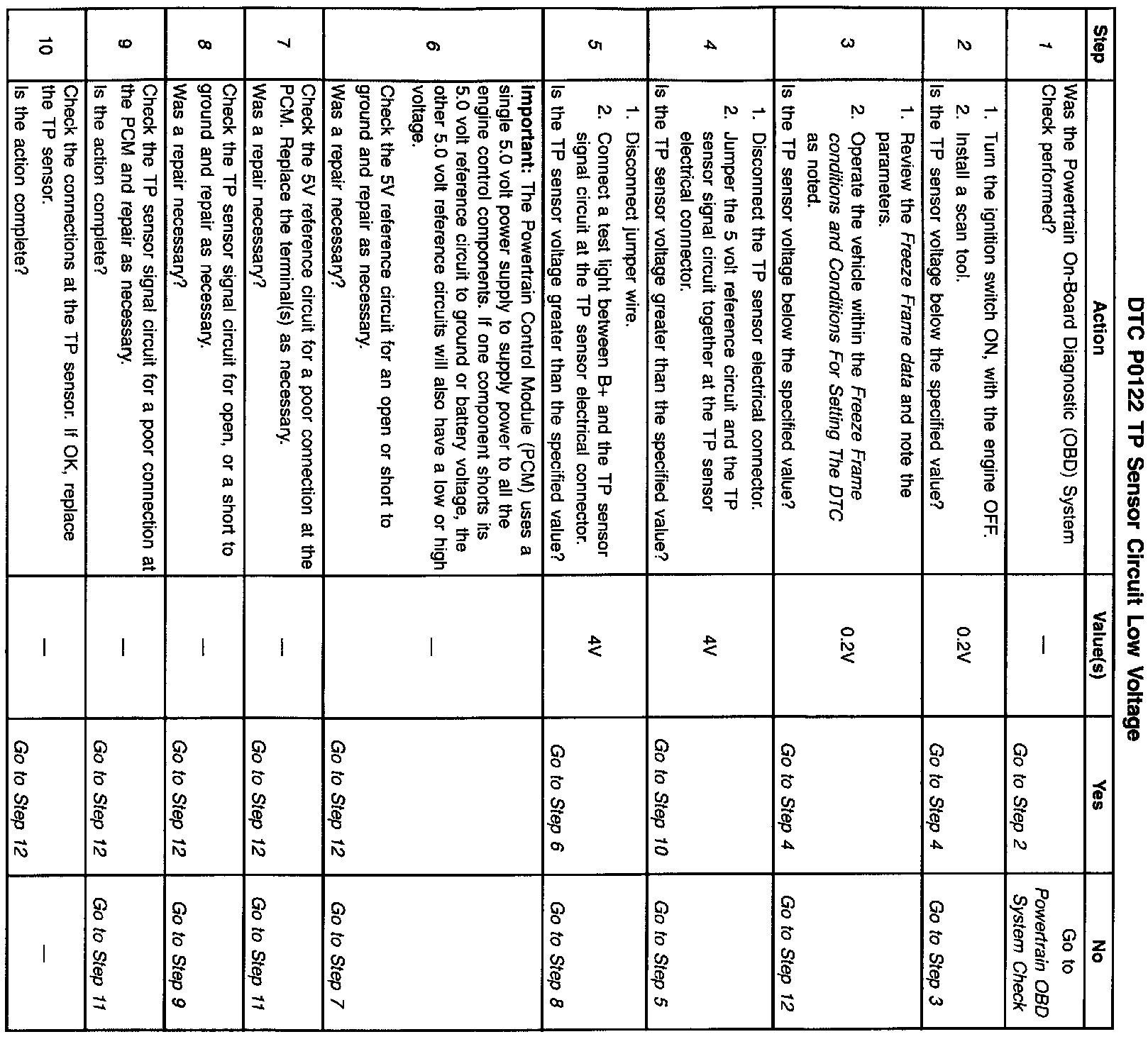 2. The TP sensor has an auto zeroing feature. If the voltage reading is between 0.20 V and 0.90 V, the PCM will automatically assume this as closed throttle position (0%).