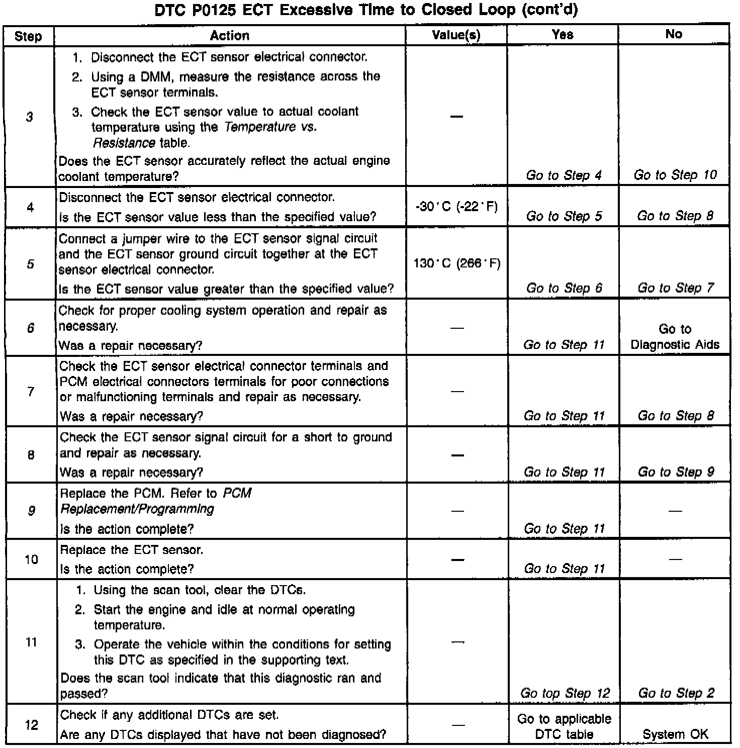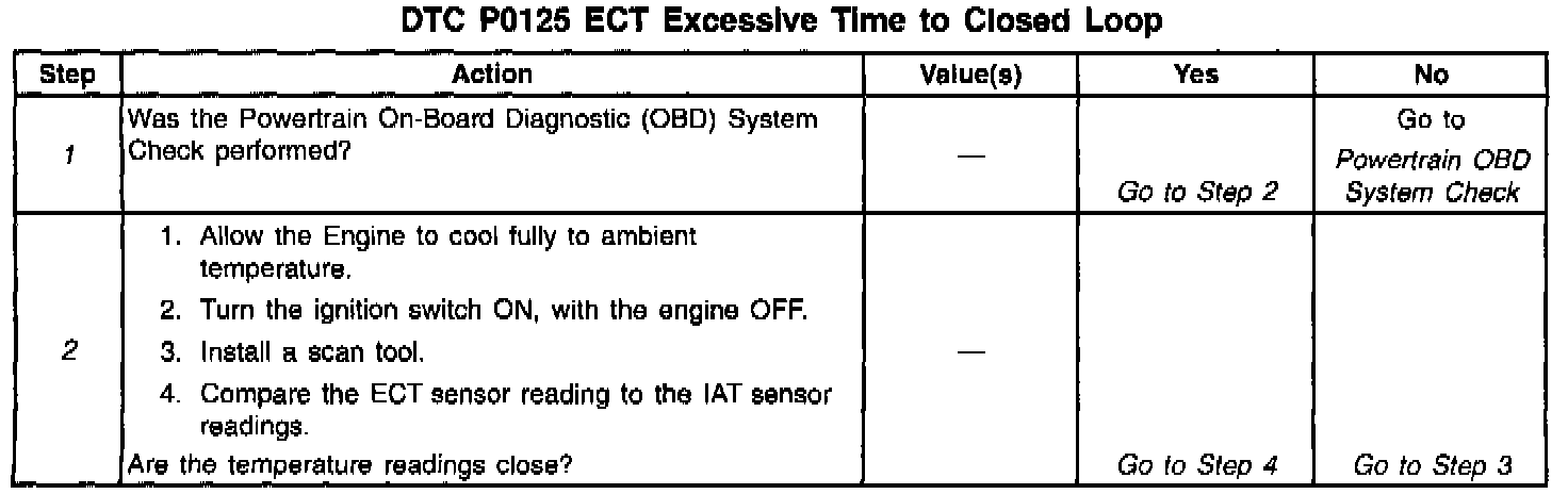 A skewed ECT sensor or a stuck open thermostat will cause DTC P0125 to set.