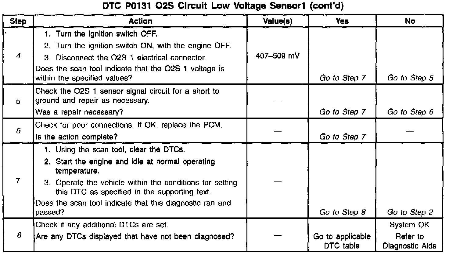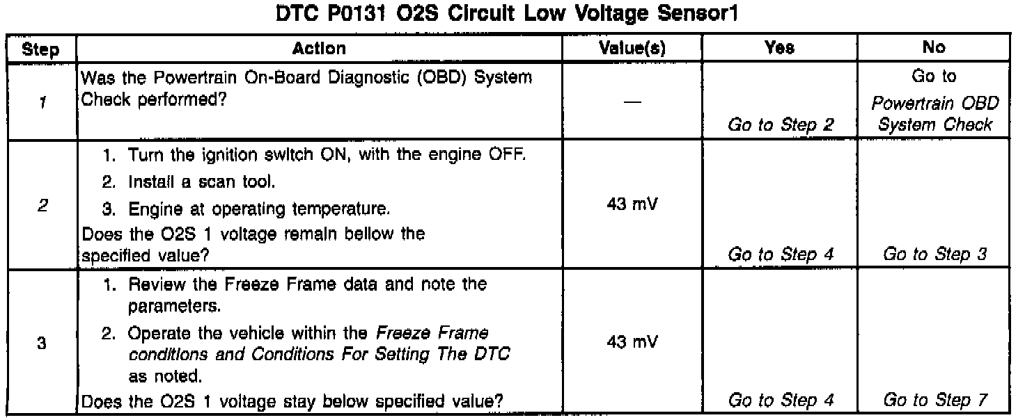 ^ An engine misfire A misfire will result in unburned oxygen in the exhaust, which can cause DTC P0131. Refer to the Driveability Symptoms.