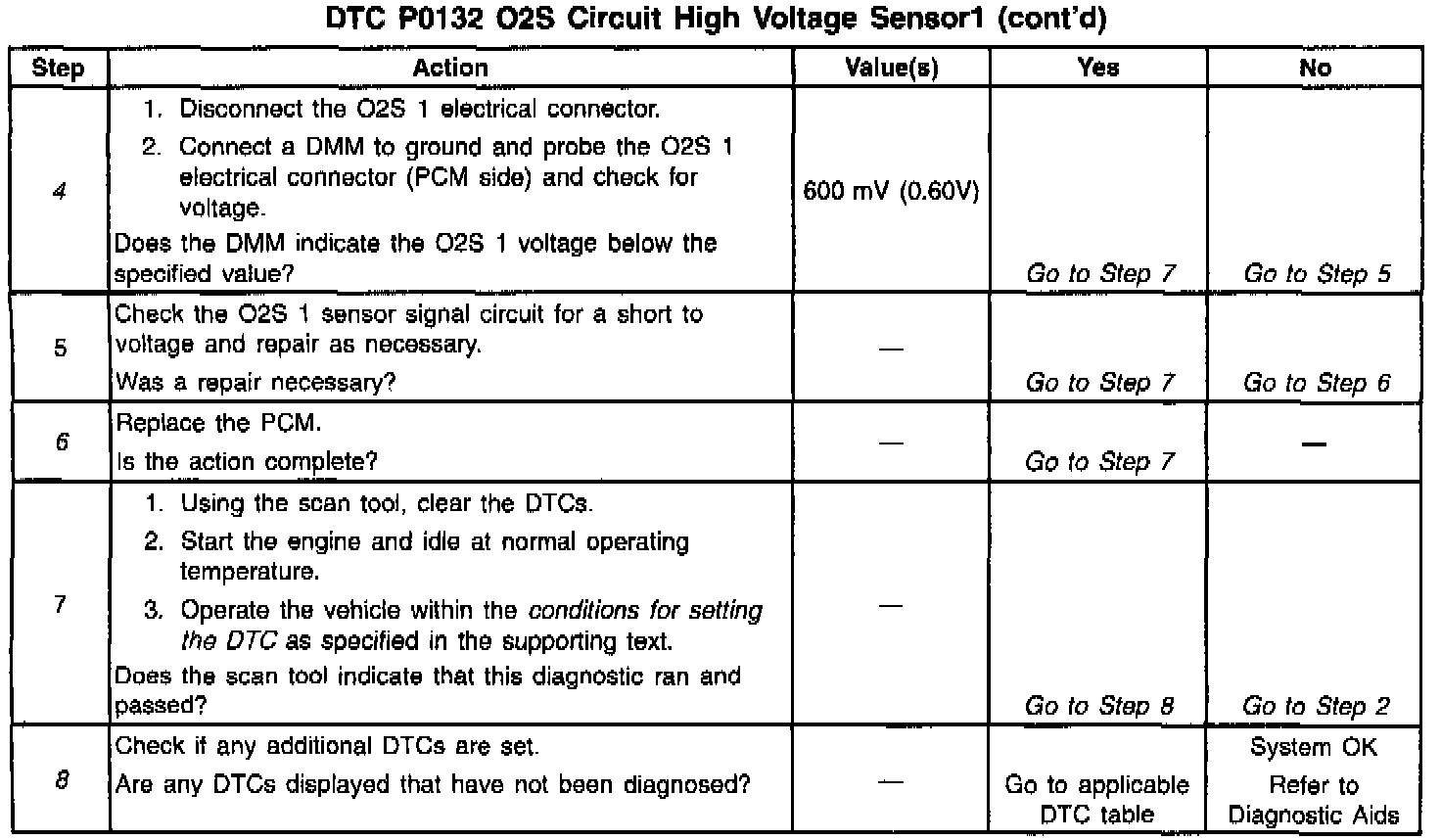 4. This step simulates a DTC P0131. If the PCM senses the change, the PCM and wiring are OK.