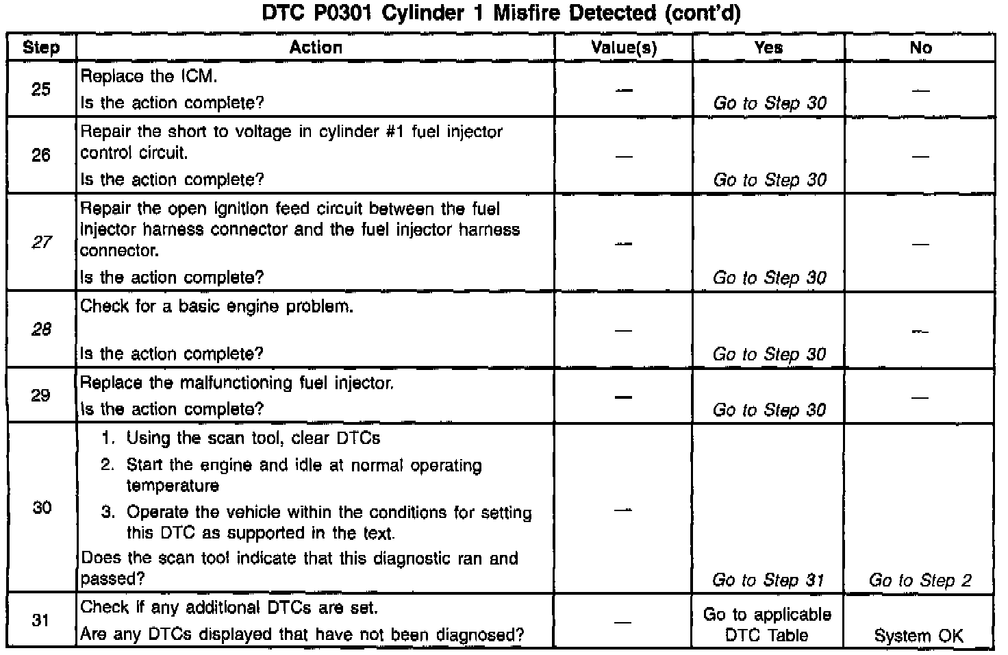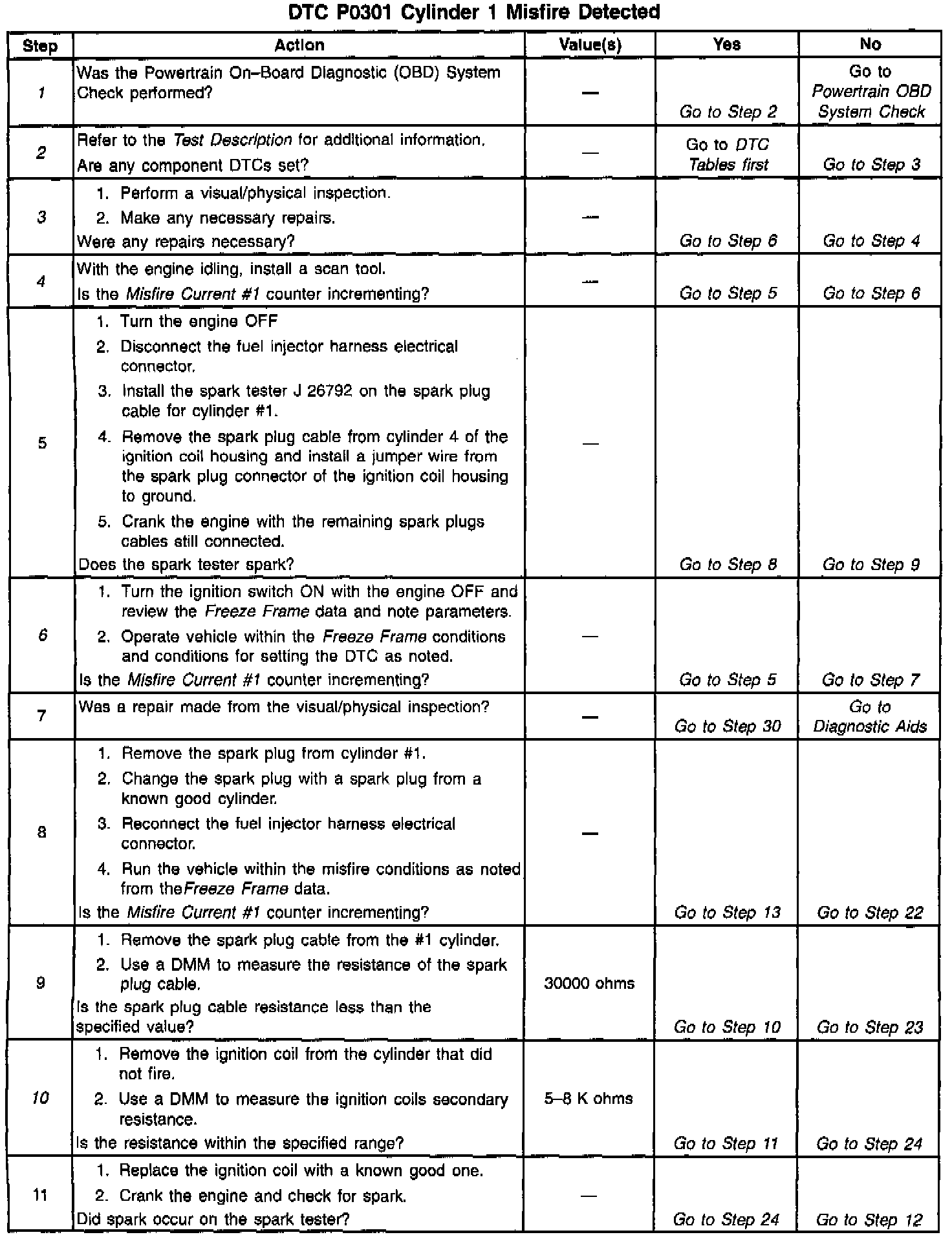4. This step determines if DTC P0301 is the result of a hard malfunction or an intermittent condition.