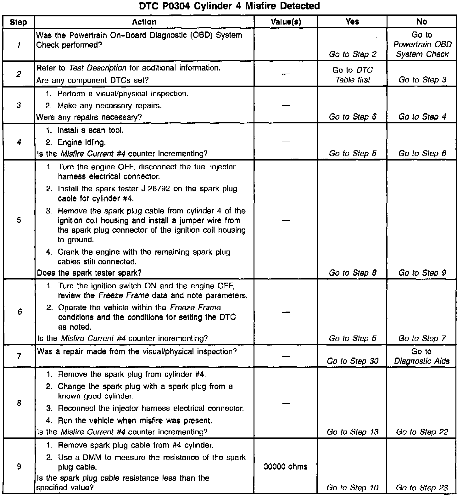 Number(s) below refer to the step number(s) on the Diagnostic Table.