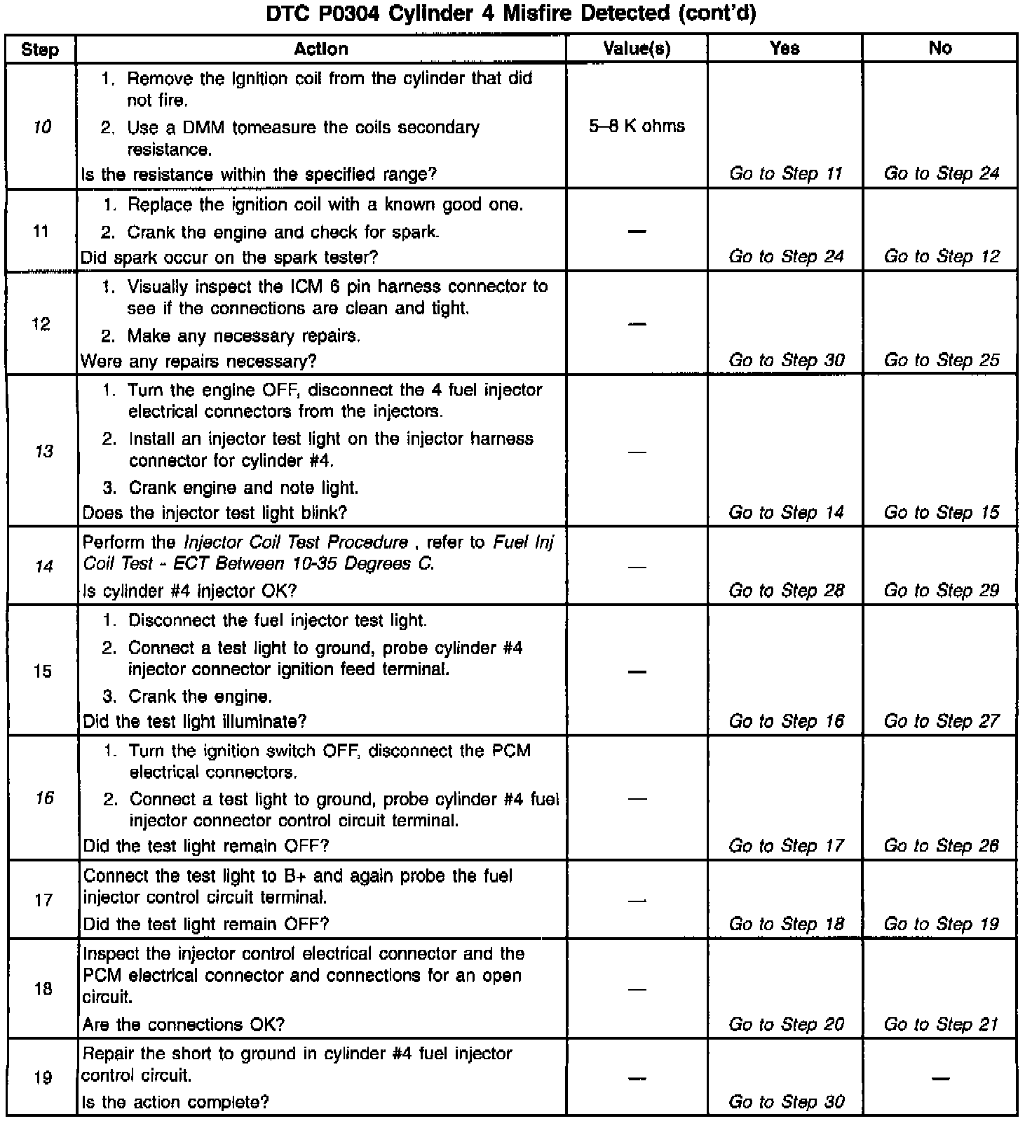 14. Perform the Injector Coil Test Procedure on the misfiring cylinder only.