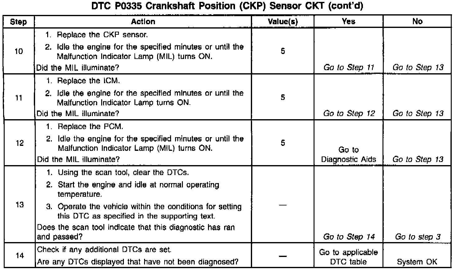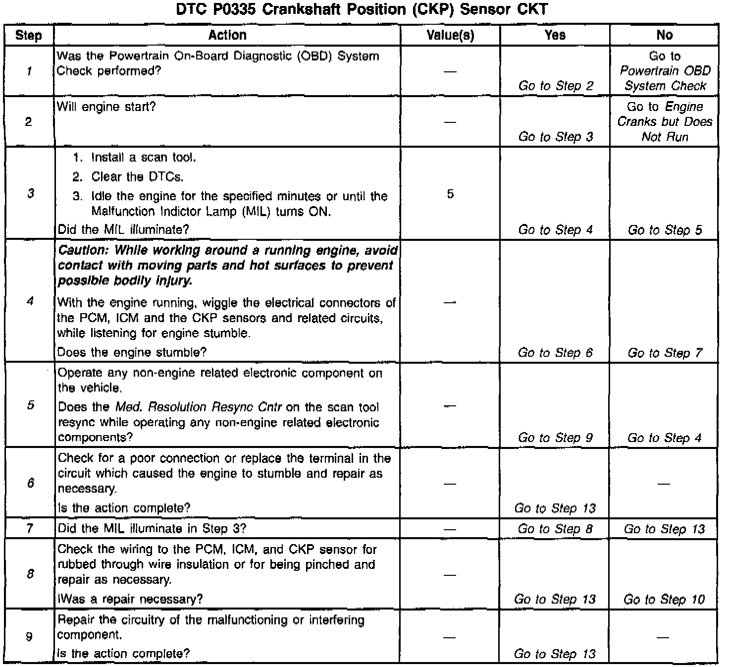 ^ If the complaint was Cranks But Will Not Run, the DTC P0335 may set when attempting to start the engine more than 15 times and the ignition is not turned OFF between the attempts.