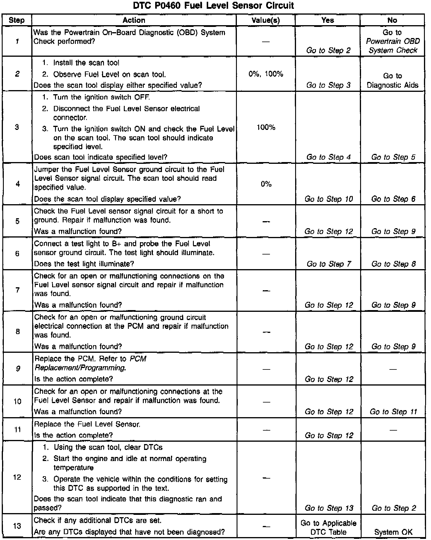 Whenever a DTC P0460 is set along with an EVAP System DTC, the EVAP DTC can not be considered valid until DTC P0460 is repaired and cleared.