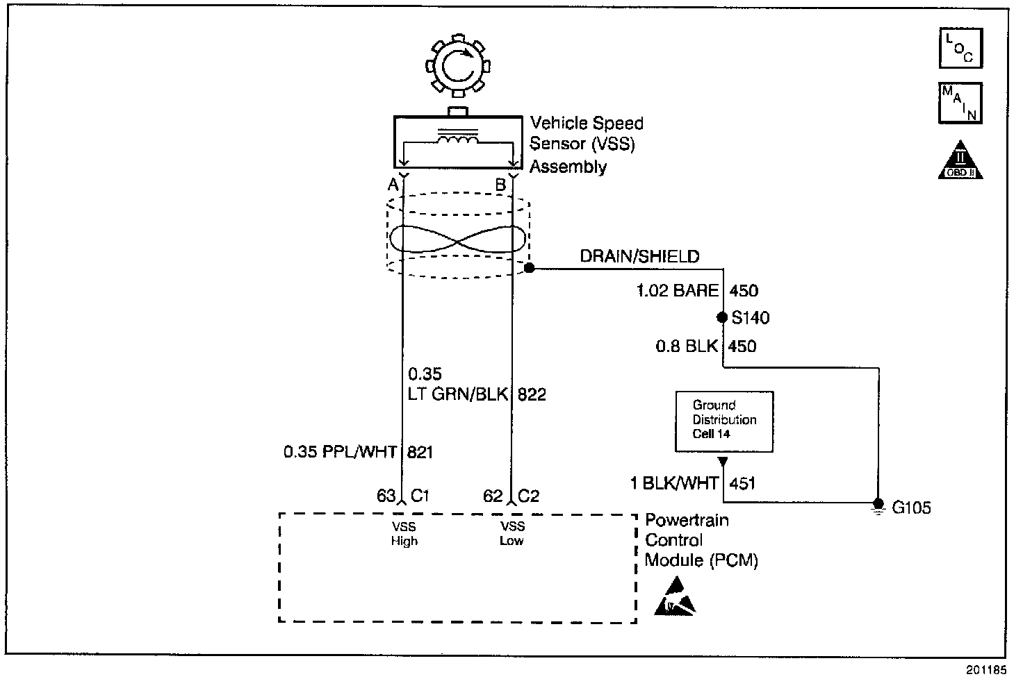 ^ Inspect the wiring at the PCM, the Vehicle Speed Sensor (VSS) connector and all other circuit connecting points for the following conditions: