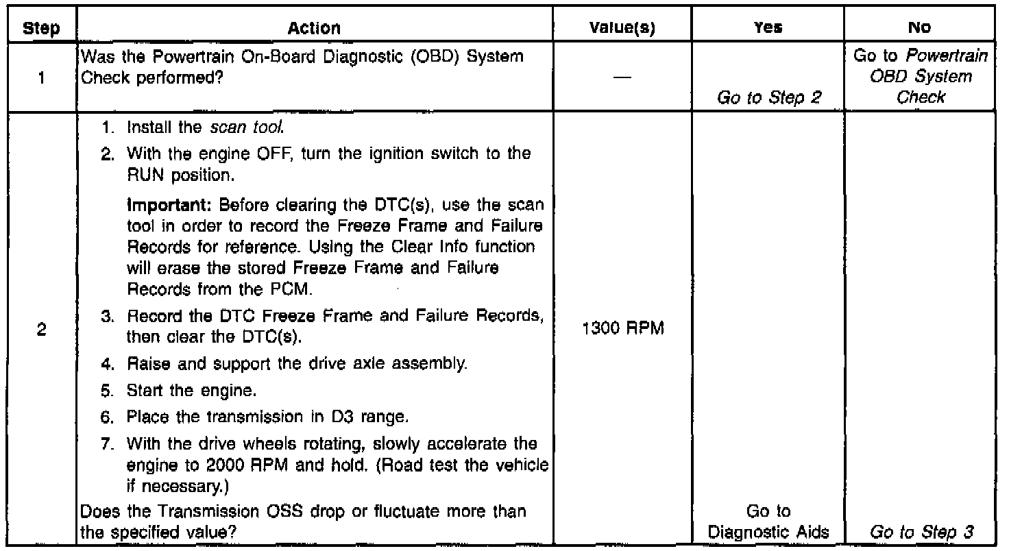 ^ The transmission output speed drop is greater than 1300 RPM for 3 seconds when not in Park/Neutral.
