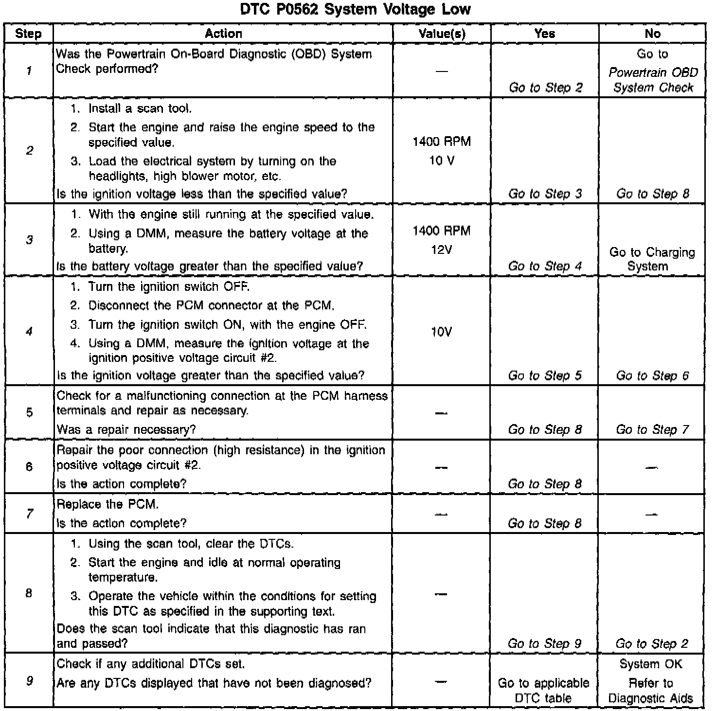 The Powertrain Control Module (PCM) monitors the system voltage on the ignition feed terminals to the PCM. A system voltage DTC sets whenever the voltage is below a calibrated value.