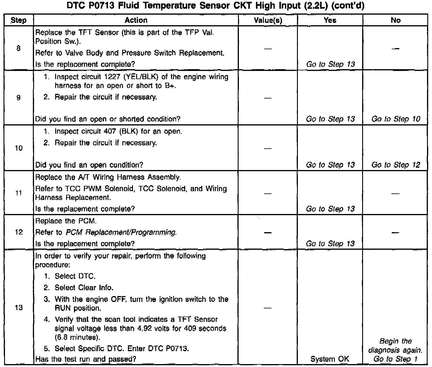 3. This step verifies that a condition exists in the TFT Sensor circuit.