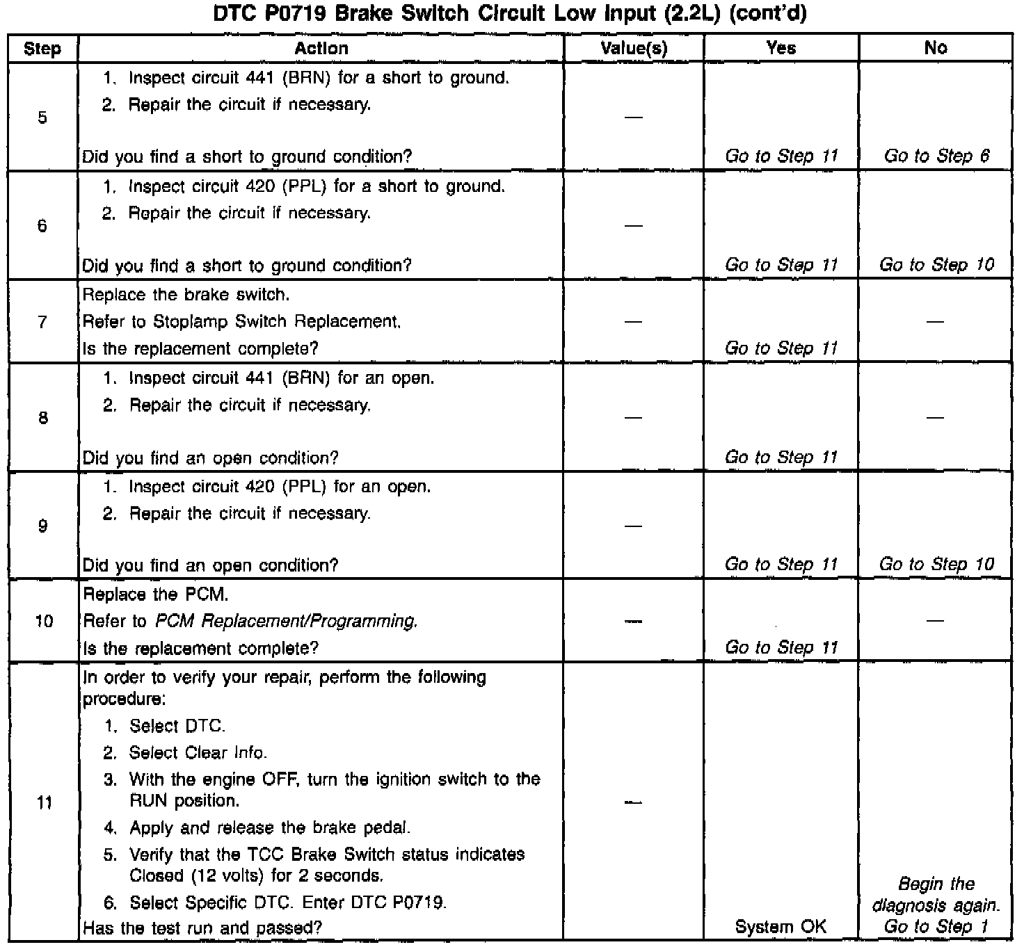 ^ Inspect the wiring at the PCM, the brake switch connector and all other circuit connecting points for the following conditions: