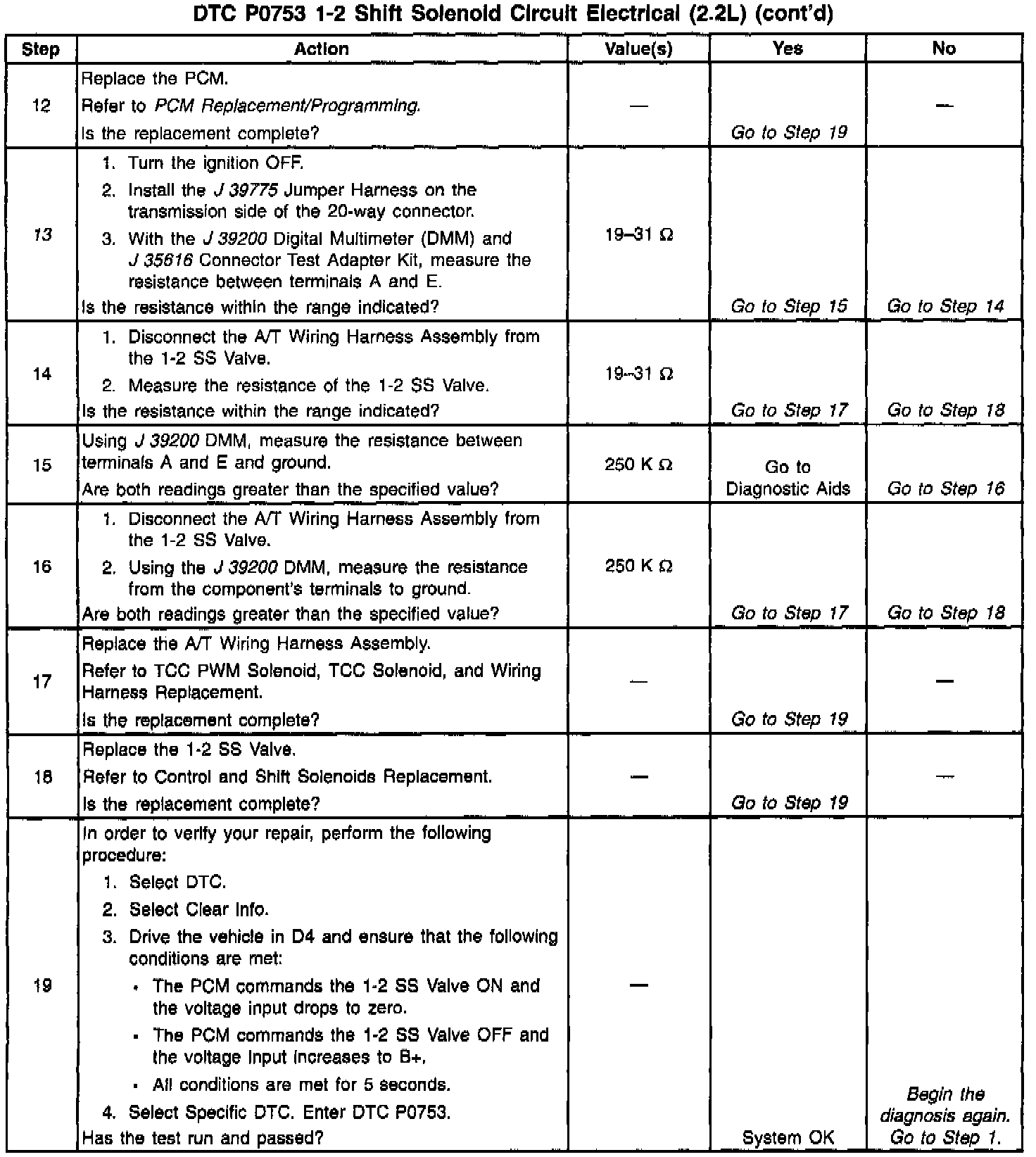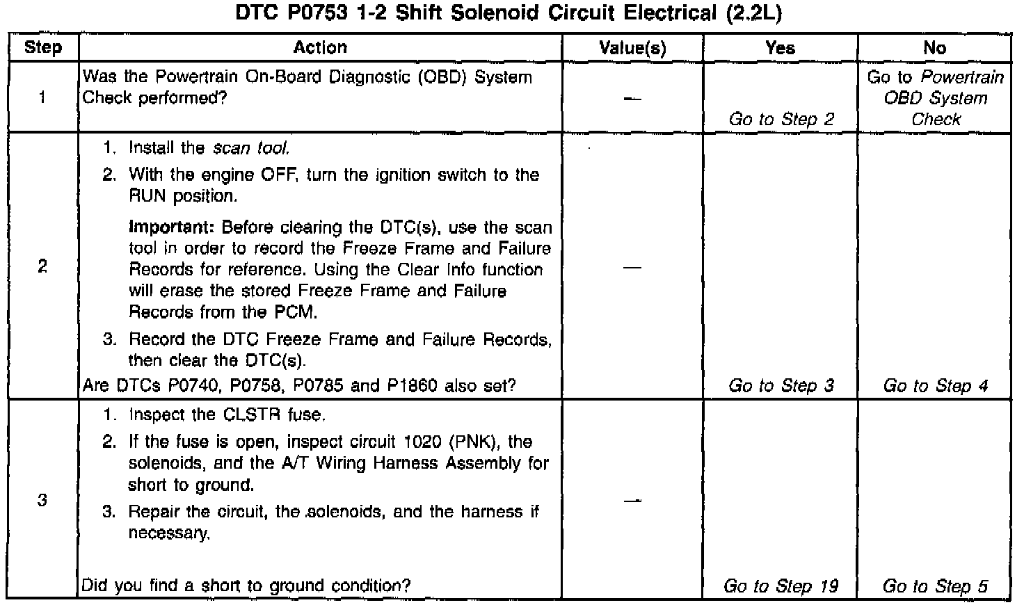 When the PCM detects a continuous open or short to ground in the 1-2 SS Valve circuit or the 1-2 SS Valve, then DTC P0753 sets. DTC P0753 is a type A DTC.