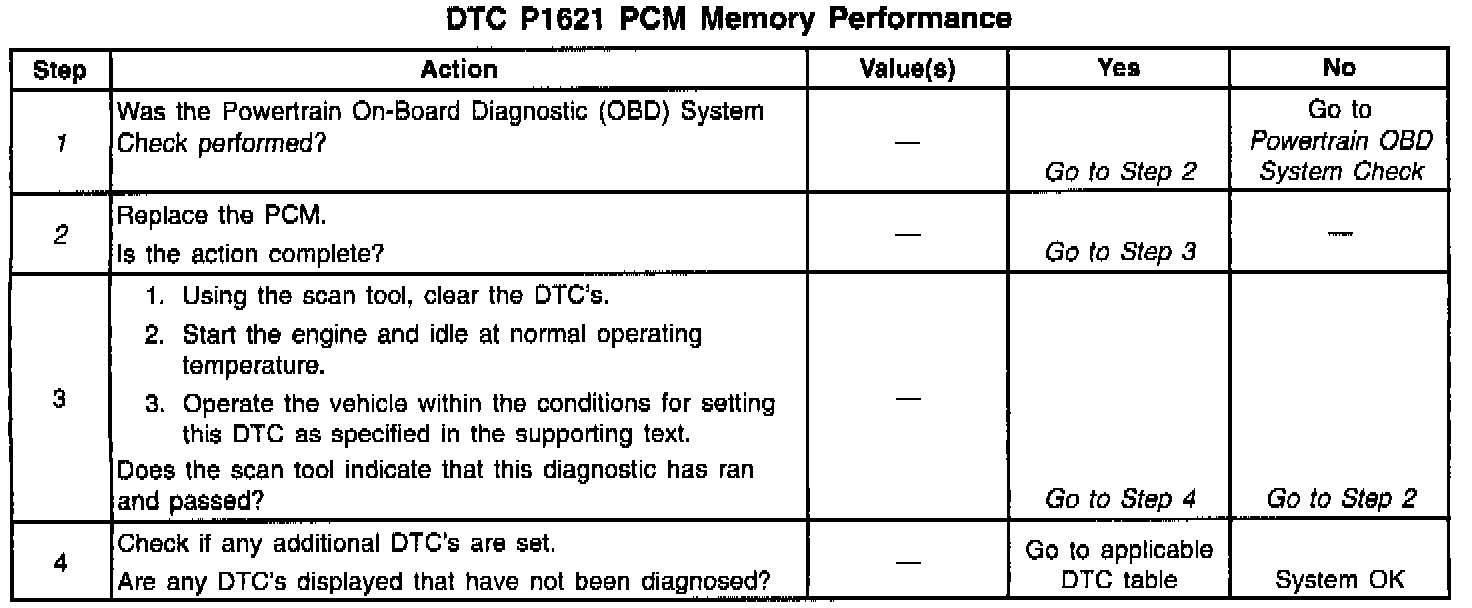 ^ The PCM will attempt to record the operating conditions at the time during which you detect this failure, however, since this is a internal PCM failure, you cannot rely on this information. This information will store in the Freeze Frame and Failure Records buffers.
