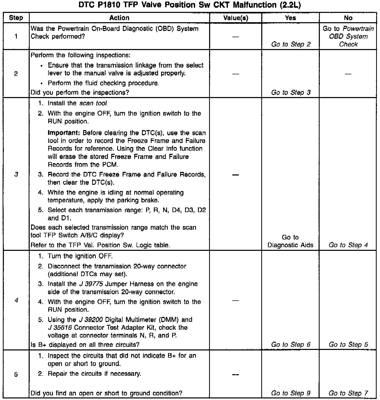 When the PCM detects an invalid state of the TFP Val. Position Sw. or the TFP Val. Position Sw. circuit by deciphering the TFP Val. Position Sw. inputs, then DTC P1810 sets. DTC P1810 is a type B DTC.