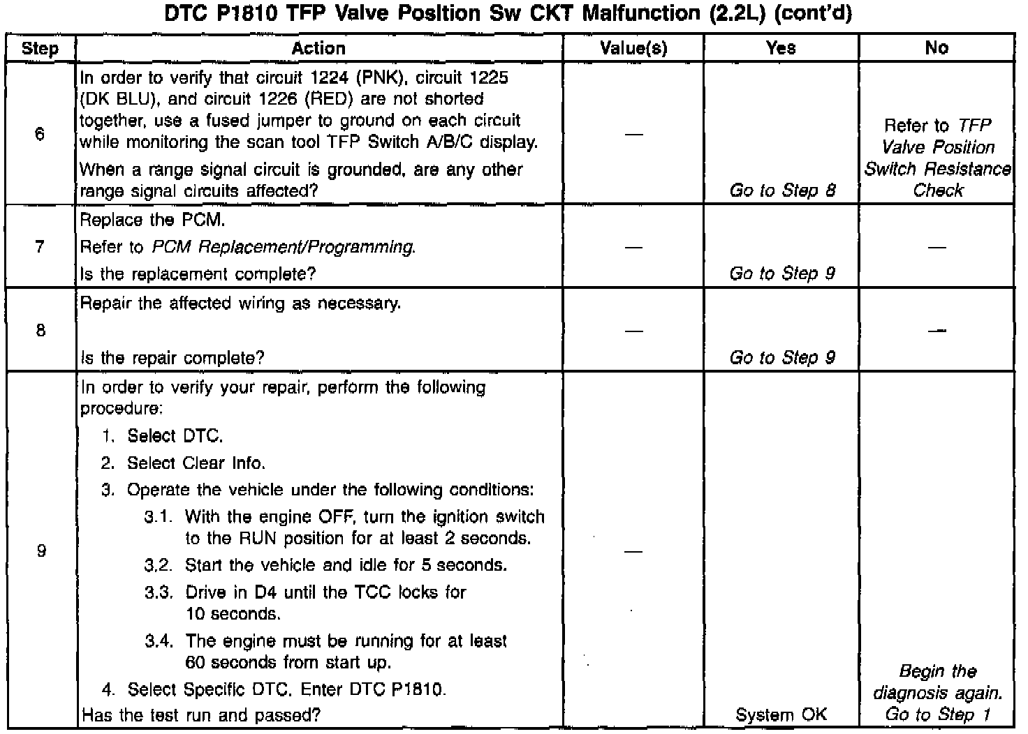 ^ Refer to the TFP Valve Position Switch Resistance Check or the Functional Test Procedure for further information.