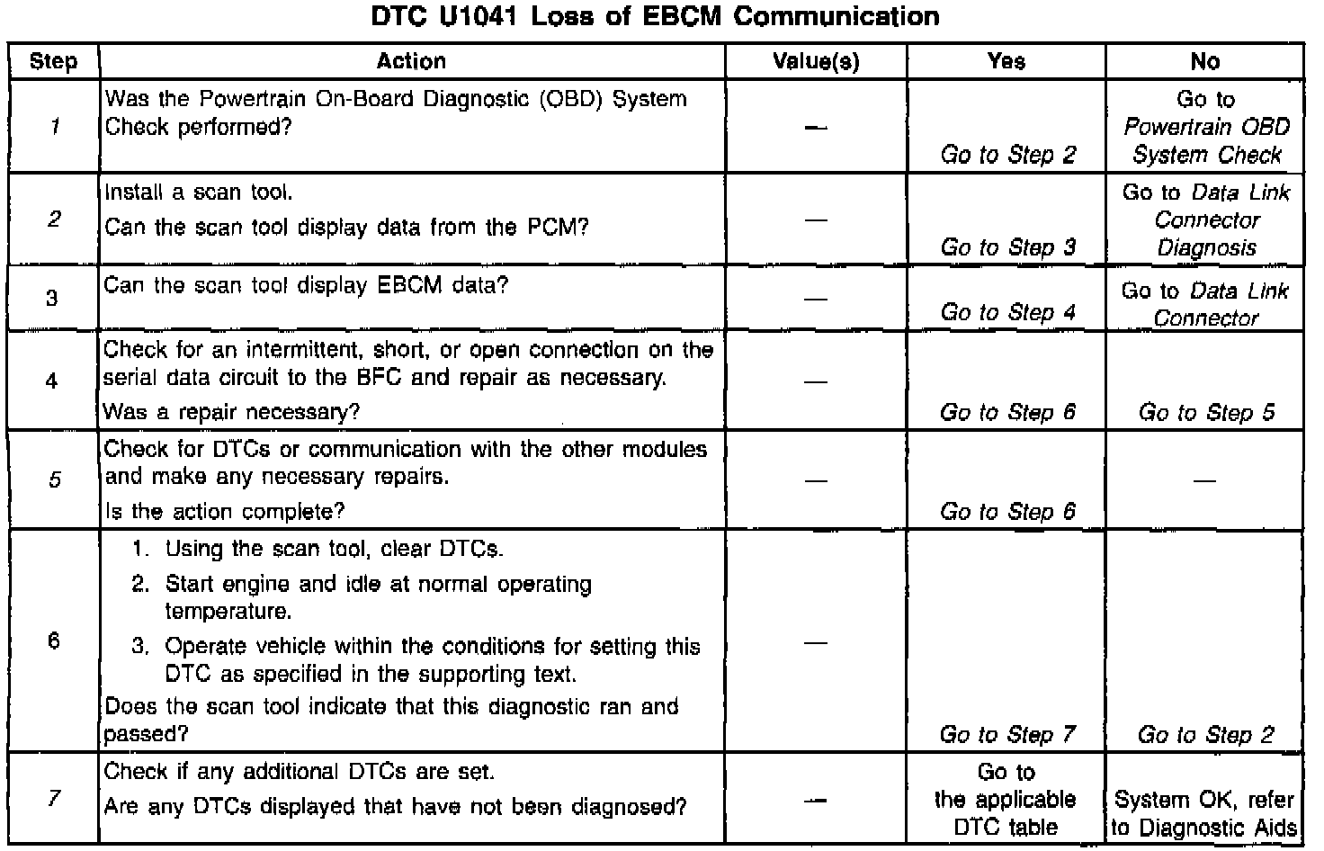 Number(s) below refer to the step number(s) on the Diagnostic Table.