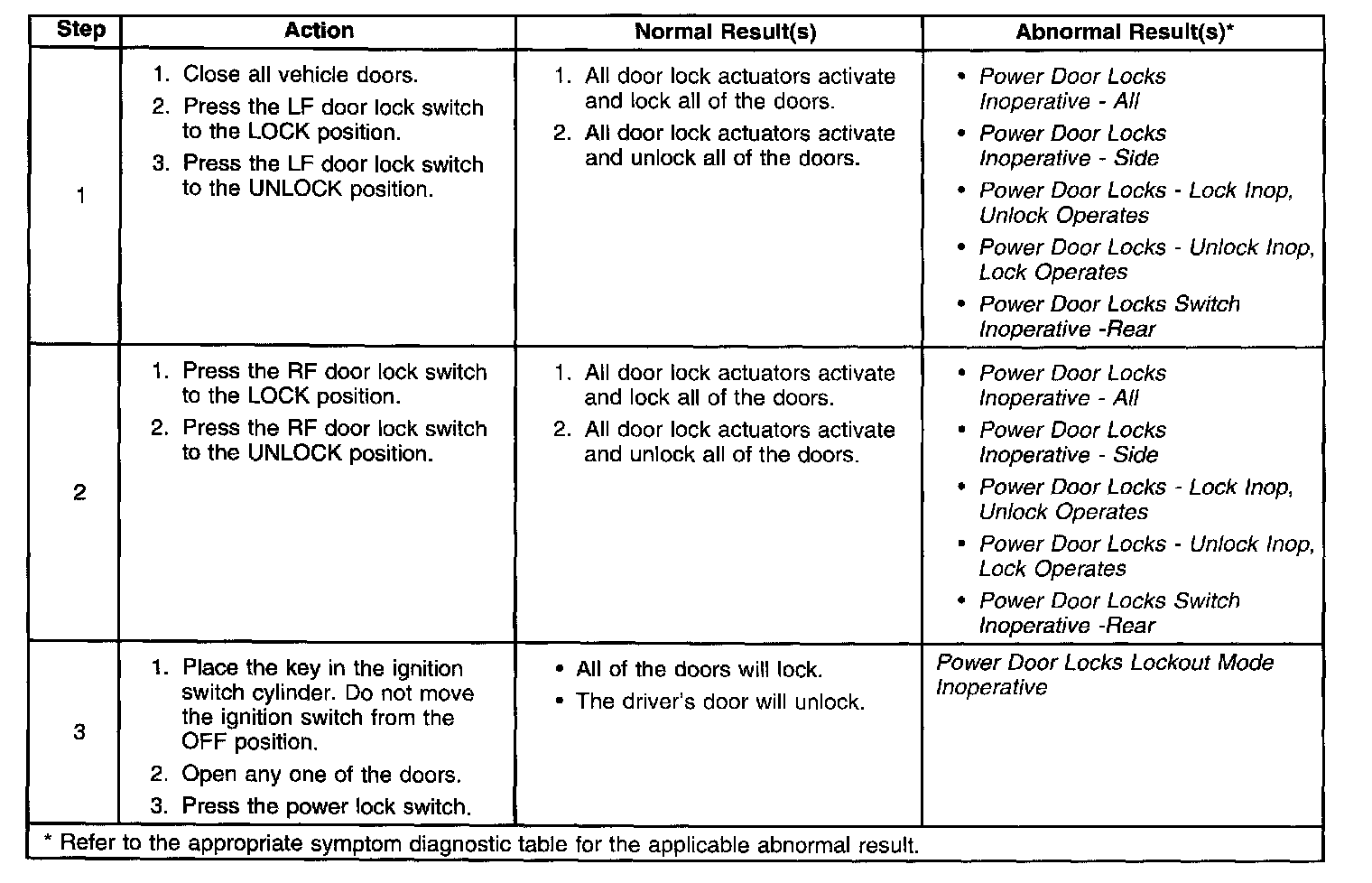 Power Door Locks System Check: