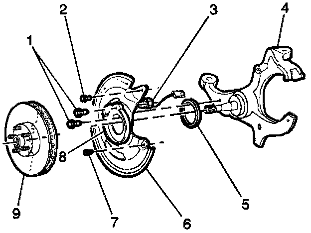 4. Remove the hub and rotor. Refer to Brake Rotor Replacement (Front Wheel).