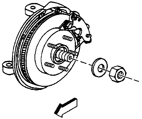 1. Install the rotor to the hub and bearing assembly. Install the caliper. Refer to Brake Caliper Replacement (Front Wheel).